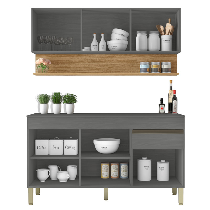 | Libellé | Cuisine Equipée 6 Portes 1 Tiroir Chêne et Gris L 150 H 200 P 53.3 cm |