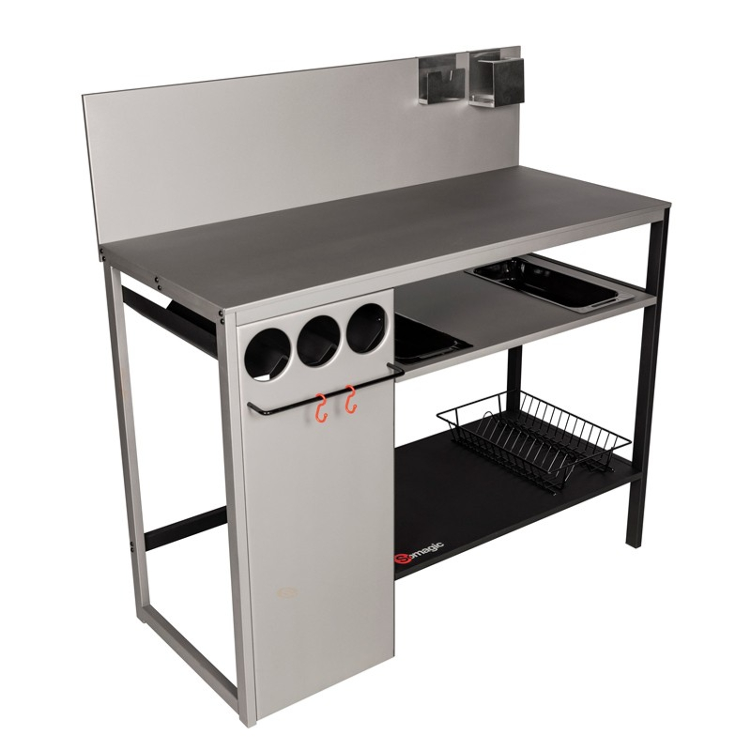 Cuisine extérieure Wallis de la marque Somagic en acier laqué. Parfaite pour y déposer une plancha à gaz, elle dispose d'un plan de travail et d'une crédence en acier laqué. Son coffre de rangement vous permettra de ranger la bouteille à gaz en toute sécurité. De nombreux rangements vous permettront de garder sous la main tous les accessoires nécessaires pour cuisiner. Crédence en acier laqué avec panier porte-épices 3 casiers porte-bouteilles 2 casiers range-couverts amovibles 1 panier porte-vaisselle Plateforme de rangement Plan de travail en acier laqué : 111 x 47 cm Dimensions (L x l x H) : 110,5 x 53,5 x 113 cm
