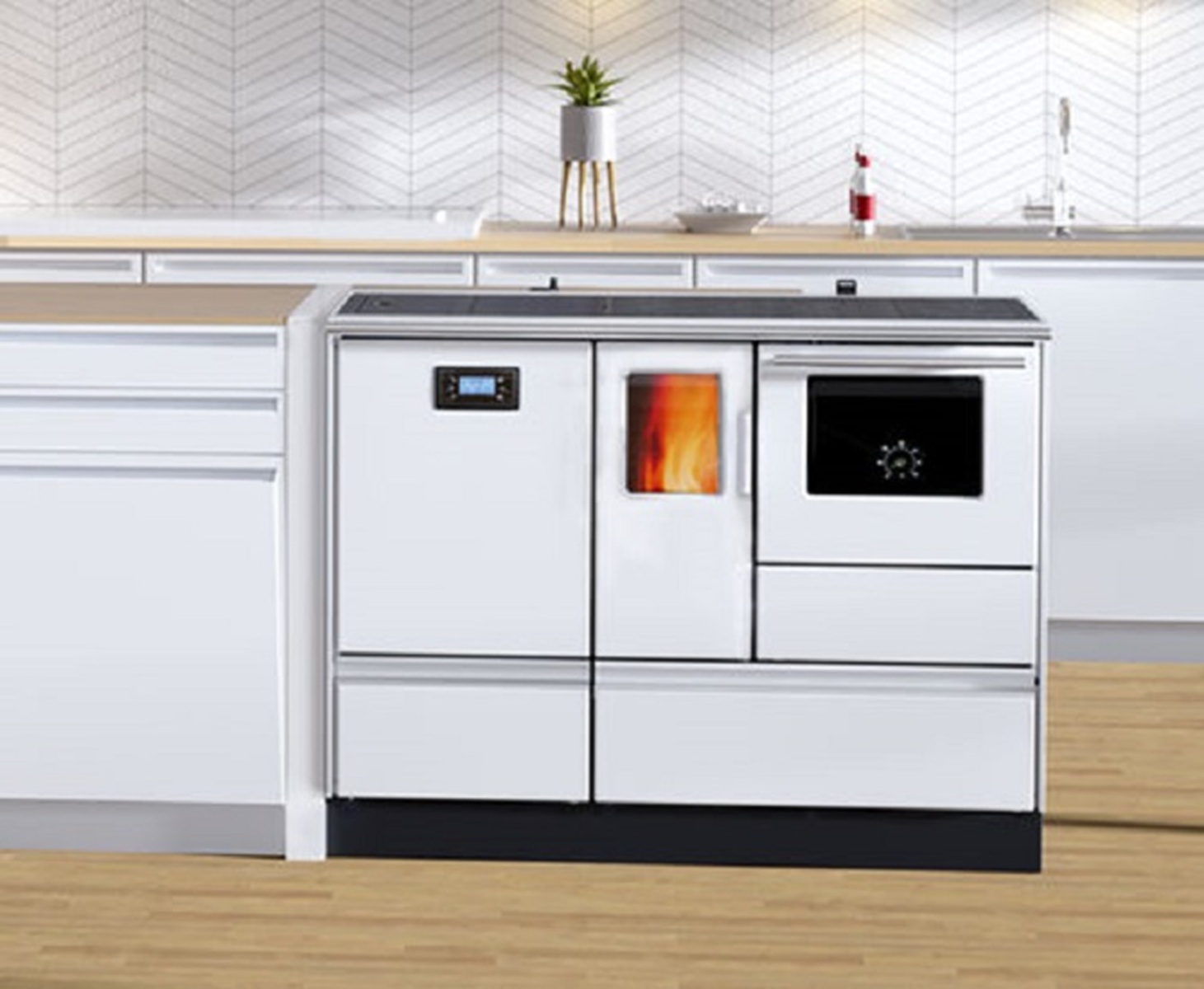 | Libellé | Cuisinière Granulés avec four Chauffage (4,8 kW) + Bouilleur (15,2 kW) Sannover 20 kW Blanc |