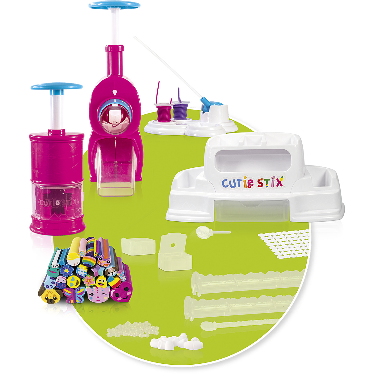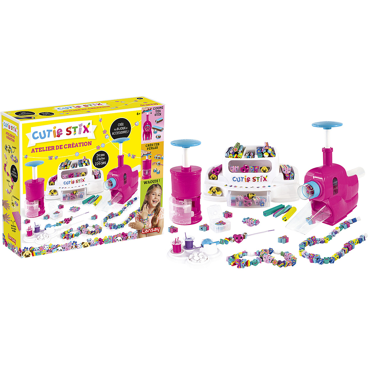 Avec la station Cutie Stix, tu peux créer des bijoux, des mini-animaux, etc. à partir de perles fun et multicolores à créer soi-même.