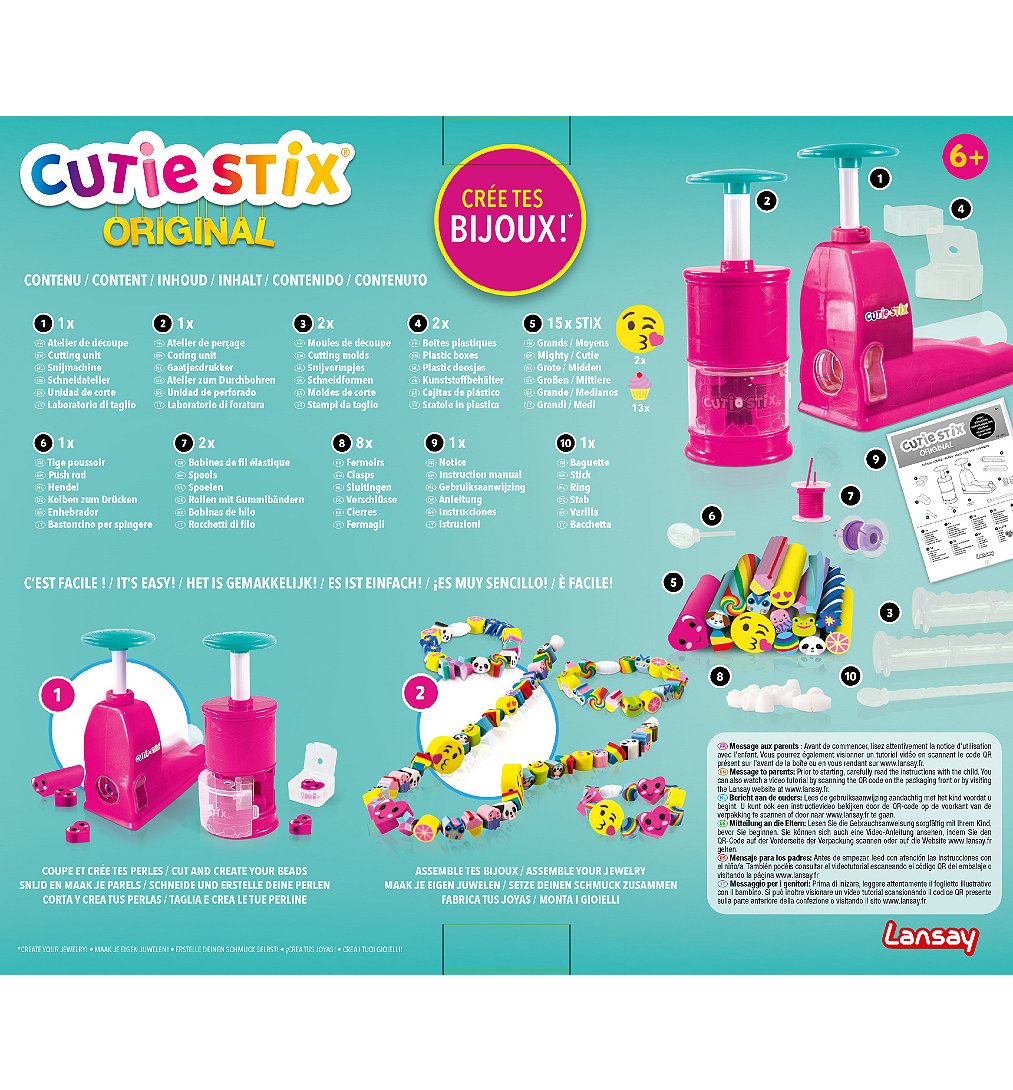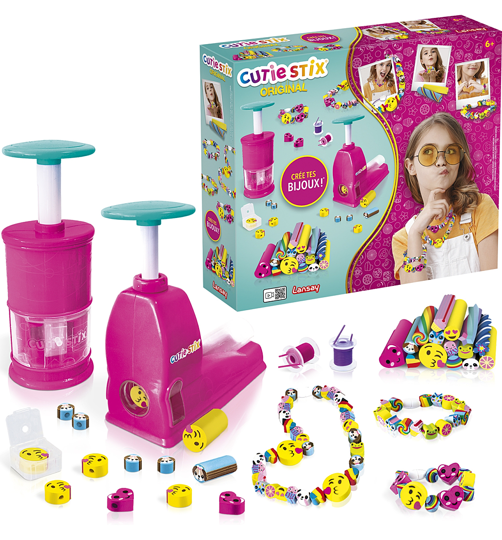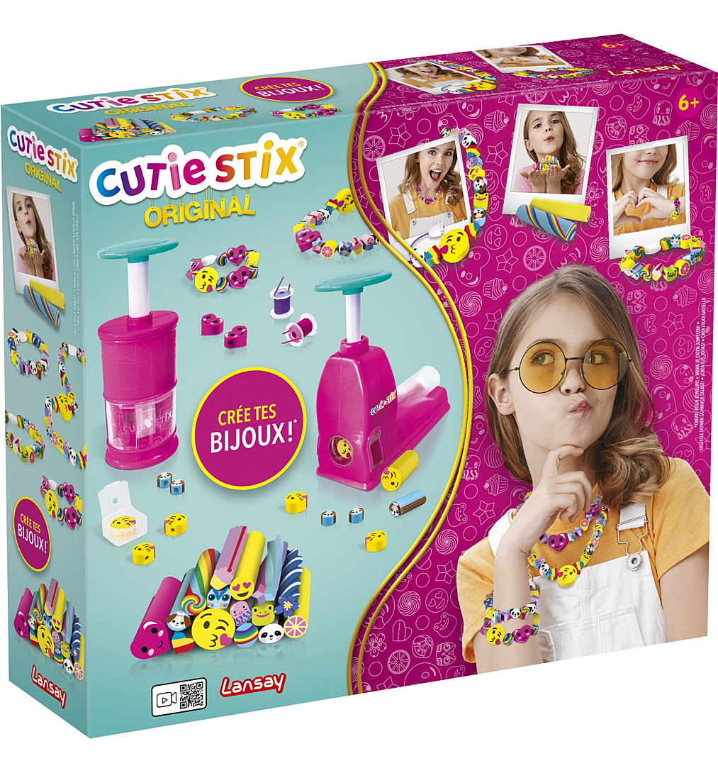 Coupe les Stix et crée des perles trop mignonnes à l’infini ! Des multitudes de formes : animaux, fleurs, fruits,… Avec le set Cutie Stix Original, tu peux créer des bijoux à partir de Stix fun et multicolores. Facile ! Coupe les Stix avec ton premier atelier puis utilise ton atelier à percer pour créer tes propres perles. Réalise des colliers et des bracelets à l'infini !Dès 6 ans.