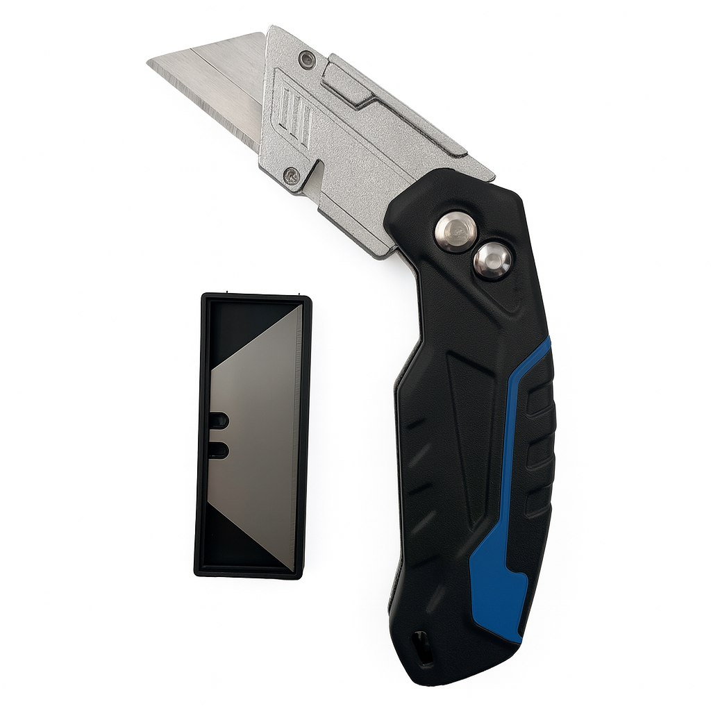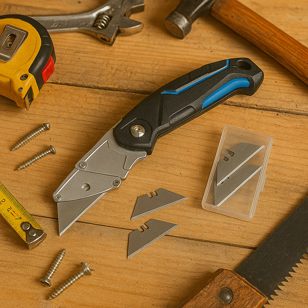 Cutter Pliant Robuste avec 3 Lames – Poignée Sécurisée – Couleur Aléatoire