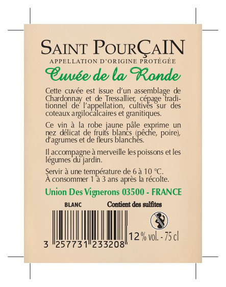 | Libellé | Cuvée de la Ronde, 2024 - Saint Pourçain AOP - Blanc Sec - 75 cl |