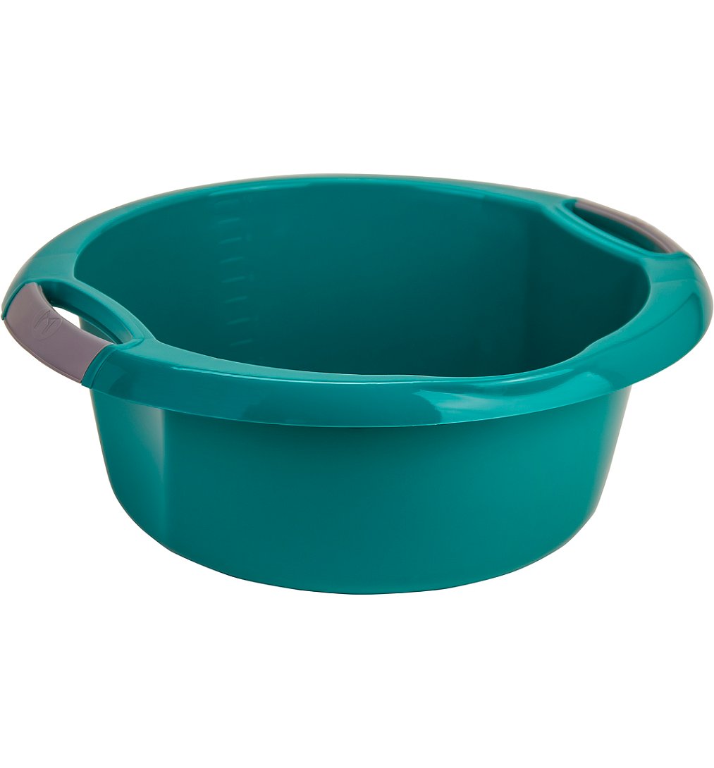 Cuvette ronde en plastique - 10 litres - poignées ergonomiques antidérapantes - bec verseur - bleu