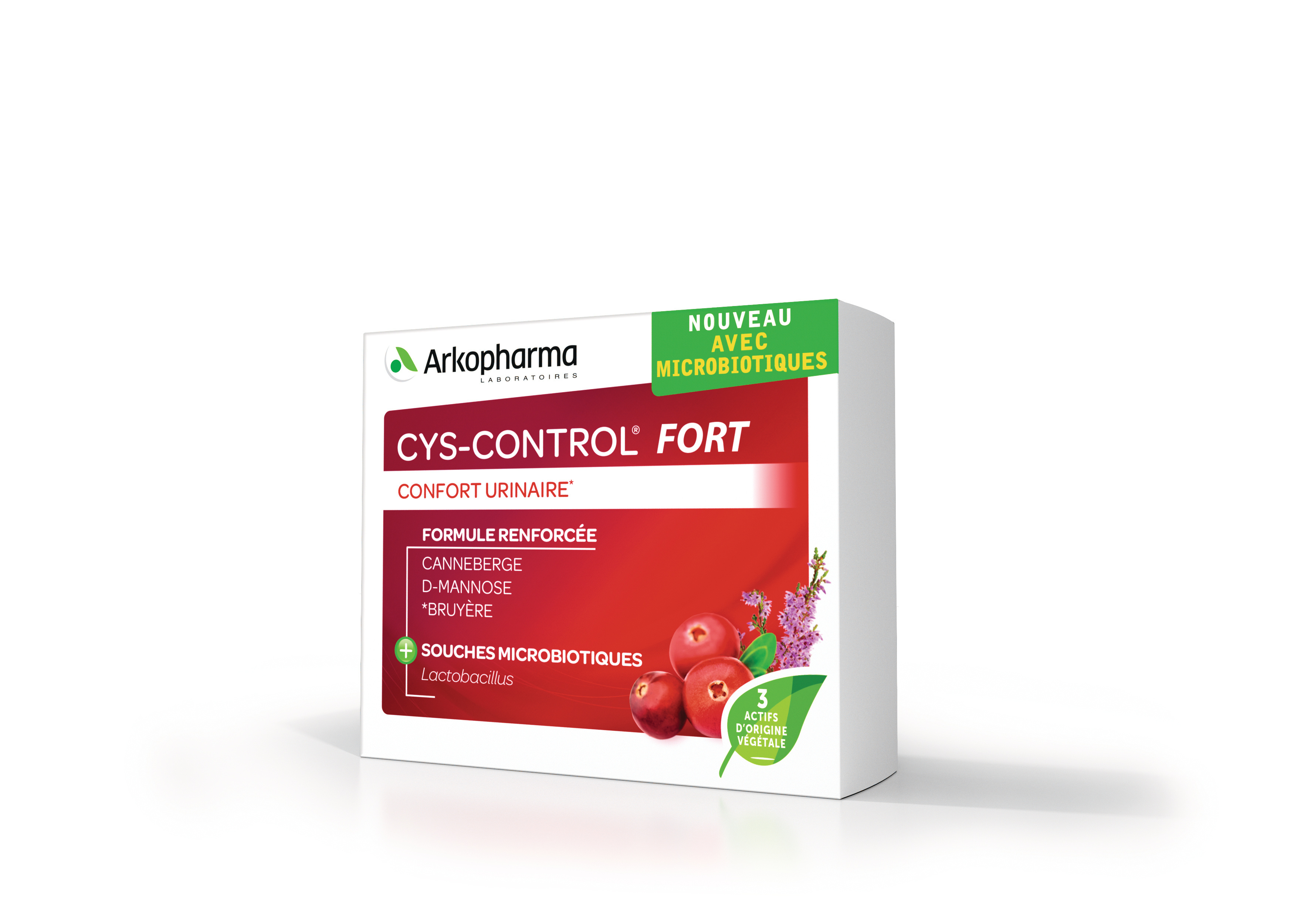 La formule de CYS-CONTROL FORT est complète avec : 3 actifs d’origine végétale. La Bruyère qui contribue aux fonctions d’élimination de l’organisme et favorise ainsi un bon confort urinaire. Le D-mannose, naturellement produit en petite quantité par l‘organisme. La Canneberge dosée en ProAnthoCyanidines de type A ou PACs**. Une prise le matin et une prise le soir permettent une répartition idéale de l’apport de PACs tout au long de la journée. 2 souches microbiotiques.Les Lactobacilles sélectionnés sont naturellement présents dans la sphère intime et sont protégés par une microencapsulationd’origine végétale.