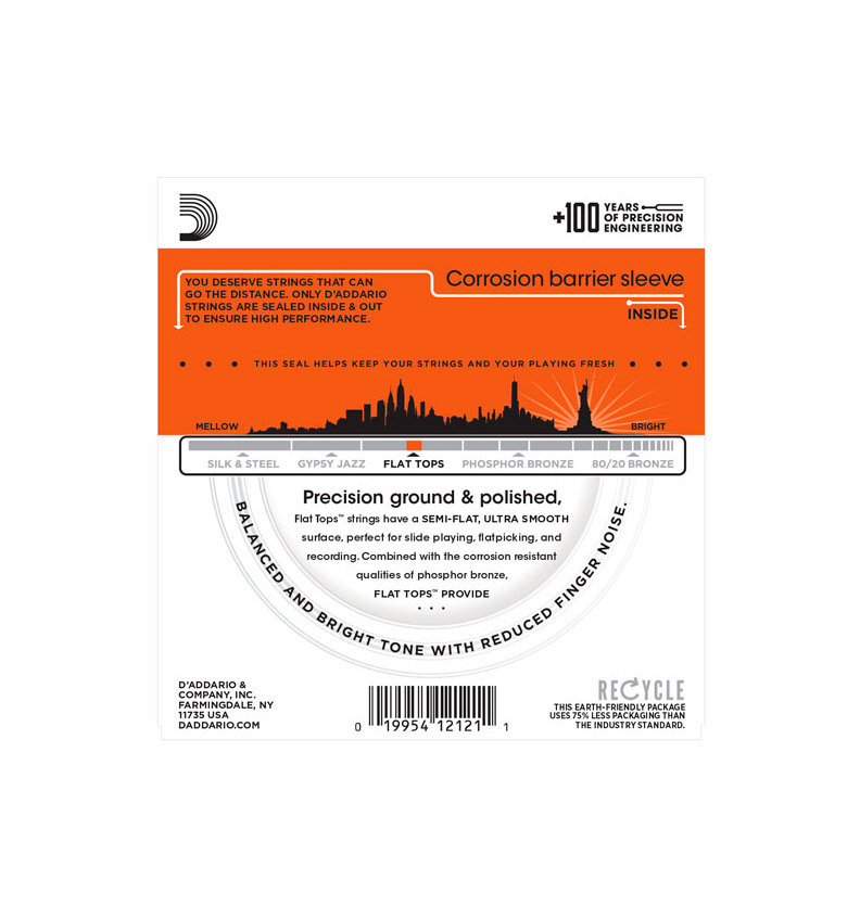 Ces cordes Flat Top sont profilées de façon à réduire le bruit des glissements de doigts sur les cordes. Elles sont idéales pour le picking ou les sessions d'enregistrement.