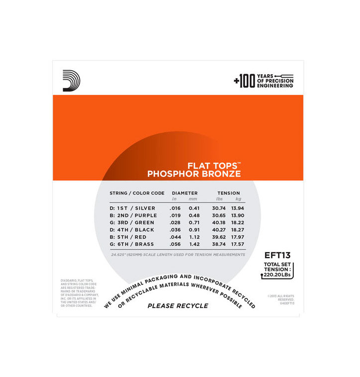 Libellé D'addario EFT13 Flat top Medium 16-56 - Jeu de cordes guitare resophonic