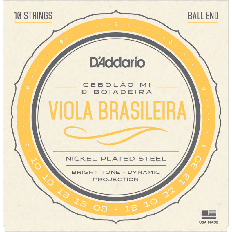 Les jeux D'Addario EJ82C pour viola brasileira sont constitués de cordes en acier avec filet en acier plaqué nickel et de cordes sans filet plaquées d'étain, et sont optimisées pour cebolao mi et boiadeira.