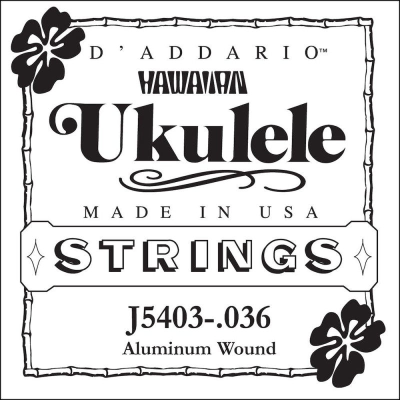 | Libellé | D'Addario J5403, filet aluminium, .036 – corde au détail – 3e corde ukulélé ténor |