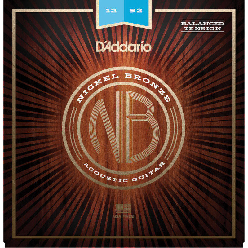 Cordes pour guitare acoustique D'Addario NB1252BT nickel bronze, tension Balanced Light, 12-52