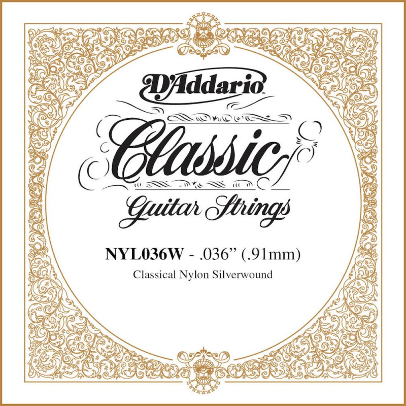 | Libellé | D'Addario NYL036W, .036 - Corde au détail – cuivre plaqué argent – guitare classique |
