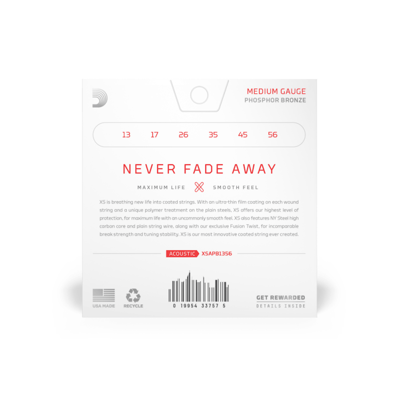 Le bronze phosphoreux XS représente un véritable bond en avant pour la technologie des cordes avec revêtement. Constituée de cordes filées avec une couche de revêtement ultrafin et de cordes en acier pur bénéficiant d'un traitement polymère unique, la gamme XS vous fait profiter de notre niveau de protection le plus élevé pour des cordes avec une durée de vie maximale et un confort de jeu surprenant. Les cordes XS et leurs âmes sont fabriquées en acier NY Steel à haute teneur en carbone, et tirent parti de notre processus exclusif de fusion par torsion pour une stabilité d'accordage et une résistance à la casse incomparables. Disponibles en bronze phosphoreux pour les guitares acoustiques 6 et 12 cordes, avec des tirants entre Extra-Light et Medium.