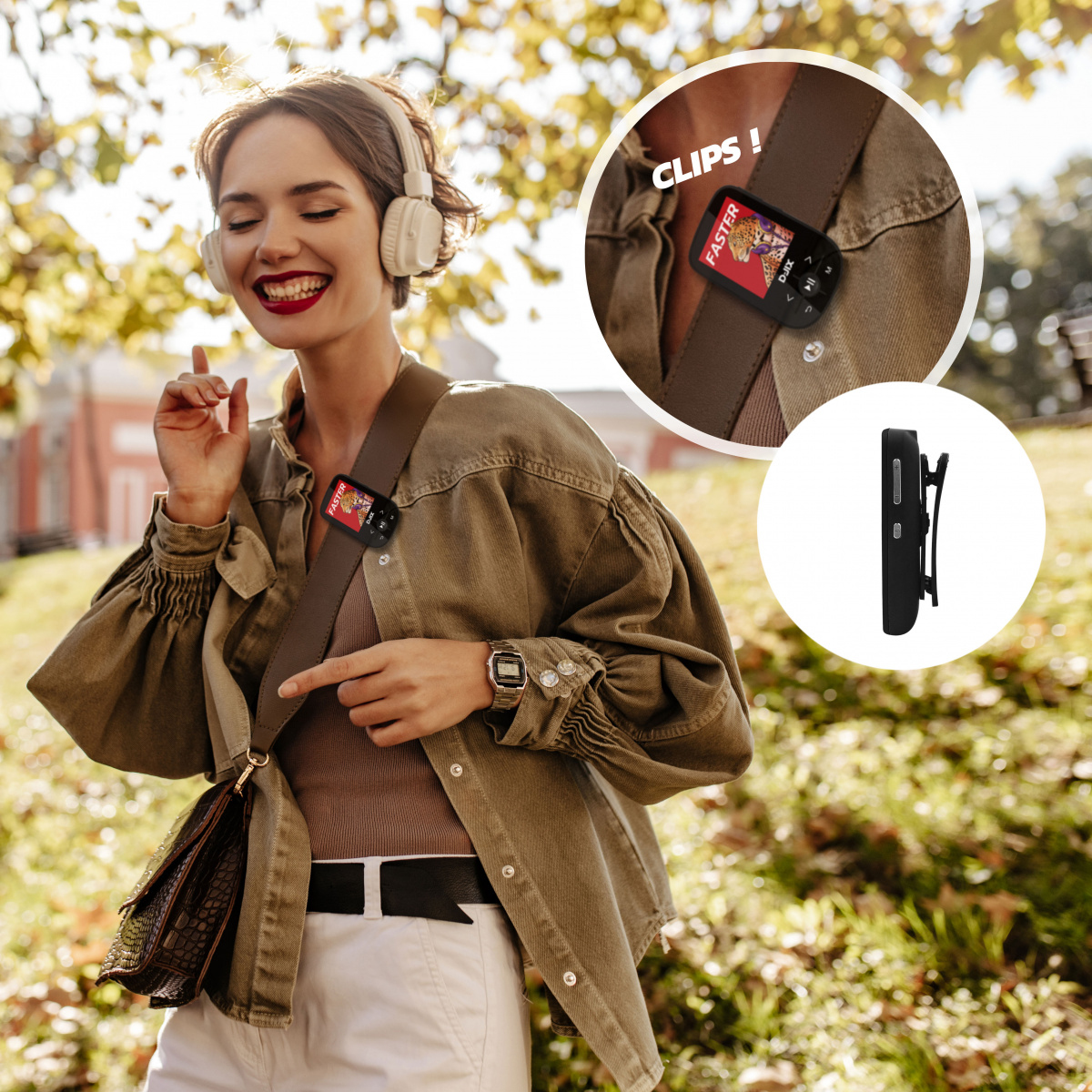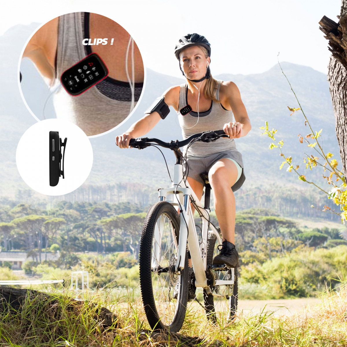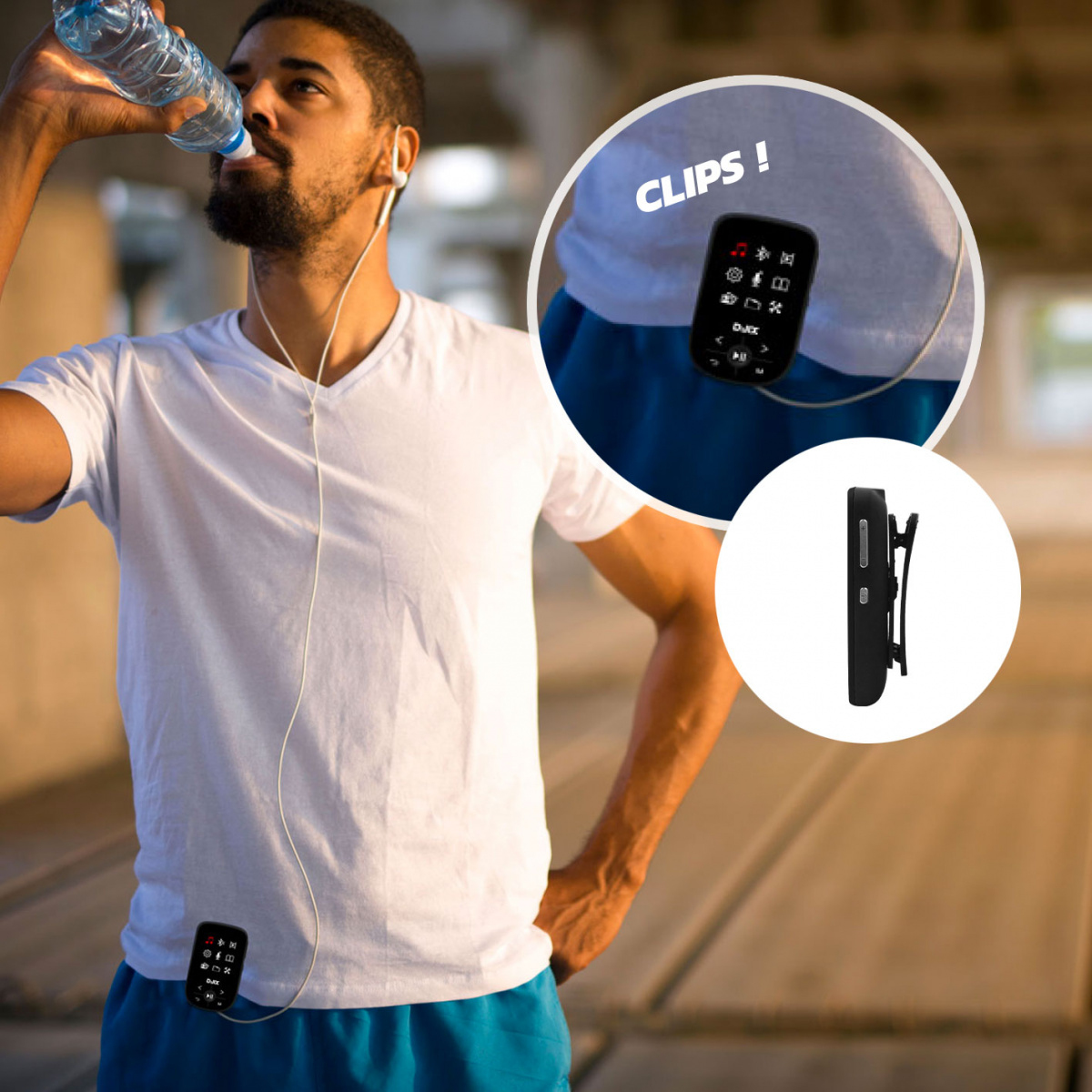 Le C100 est le MP4 Clip idéal pour les mélomanes qui souhaitent embarquer leurs morceaux de musique favoris n’importe où, même lors d’un jogging ou d’une sortie vélo. Clipsez votre MP4 à votre pantalon, votre short ou votre haut, chaussez vos baskets, et c’est parti !