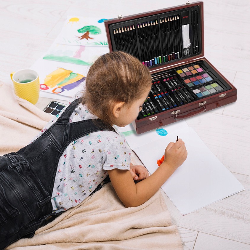 | Libellé | DALY Mallette en bois kit dessin et peinture 143 pièces pour enfants Noyer |