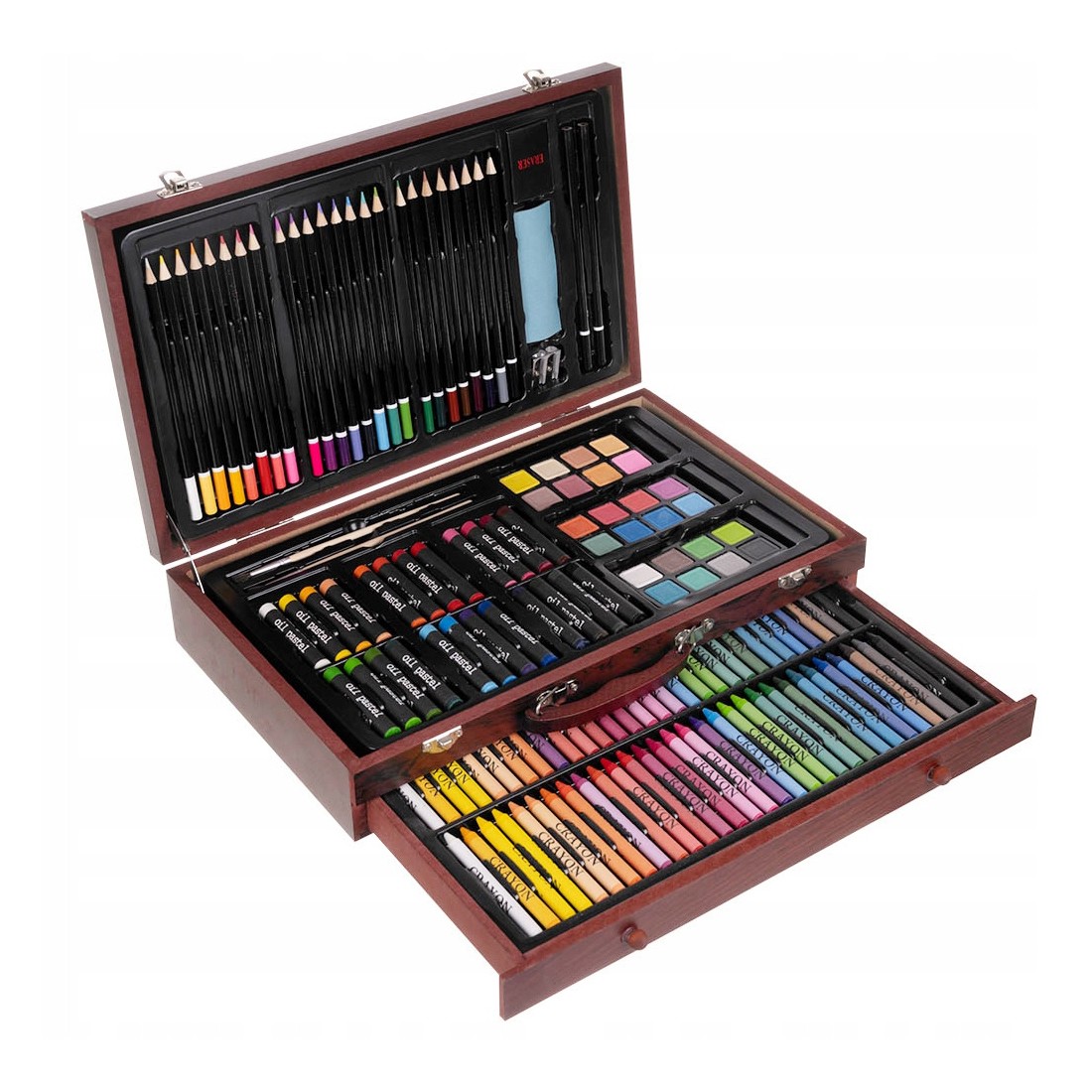 DALY Mallette en bois kit dessin et peinture 143 pièces pour enfants.