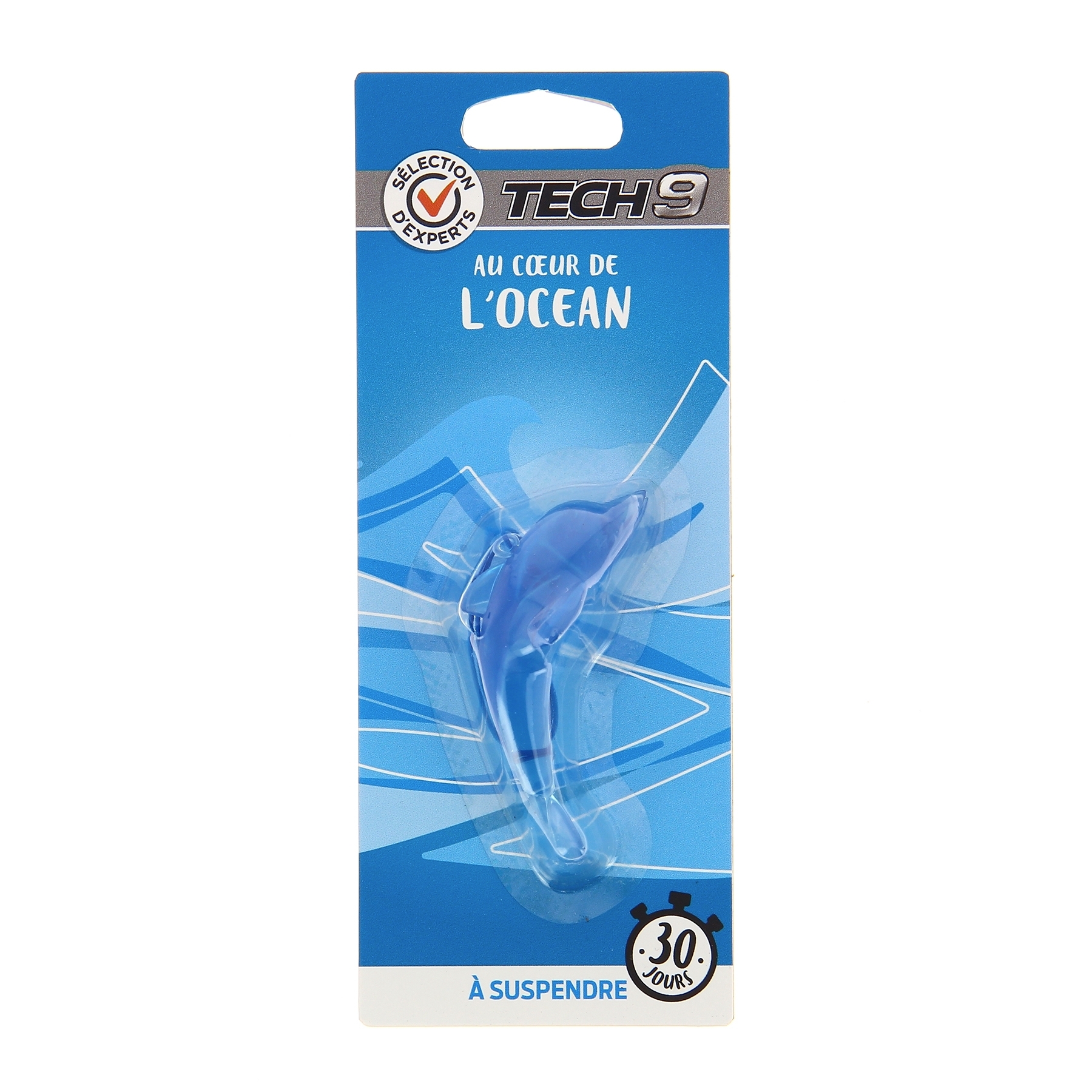 Le dauphin TECH9 diffuse un agréable parfum marin dans votre habitacle pendant 30 jours. Elle est munie d'une petite languette pour le suspendre au rétroviseur de votre véhicule.
