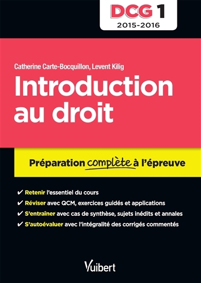 | Libellé | DCG 1. Introduction au droit - Préparation complète à l'épreuve - 2015-2016 (Broché) |