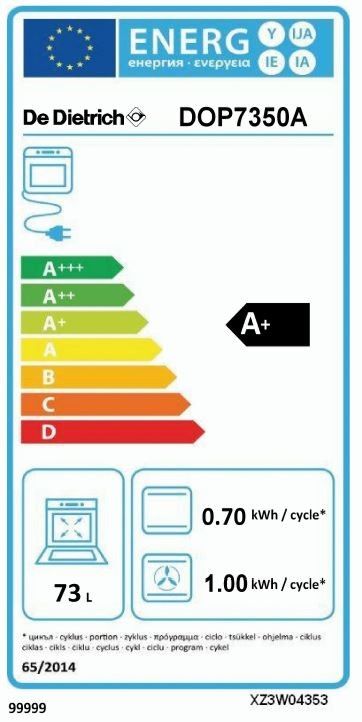 De Dietrich DOP7350A four 73 L 3385 W Noir