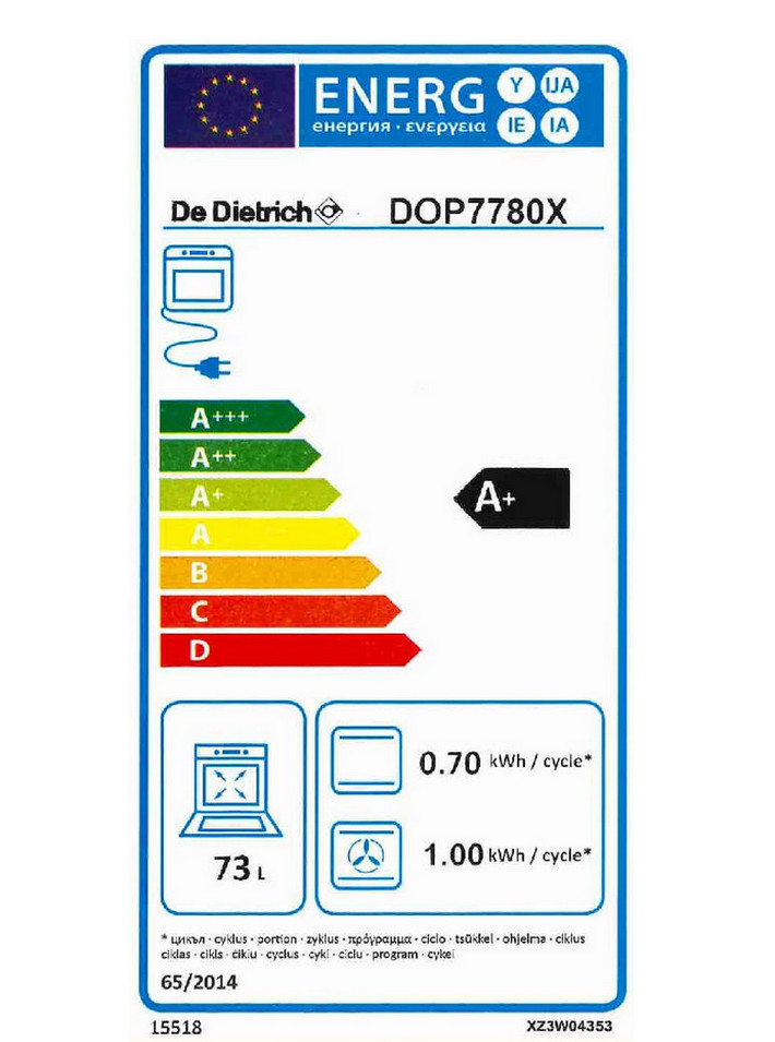 | Libellé | De Dietrich DOP7780X four 73 L 3385 W Acier inoxydable |