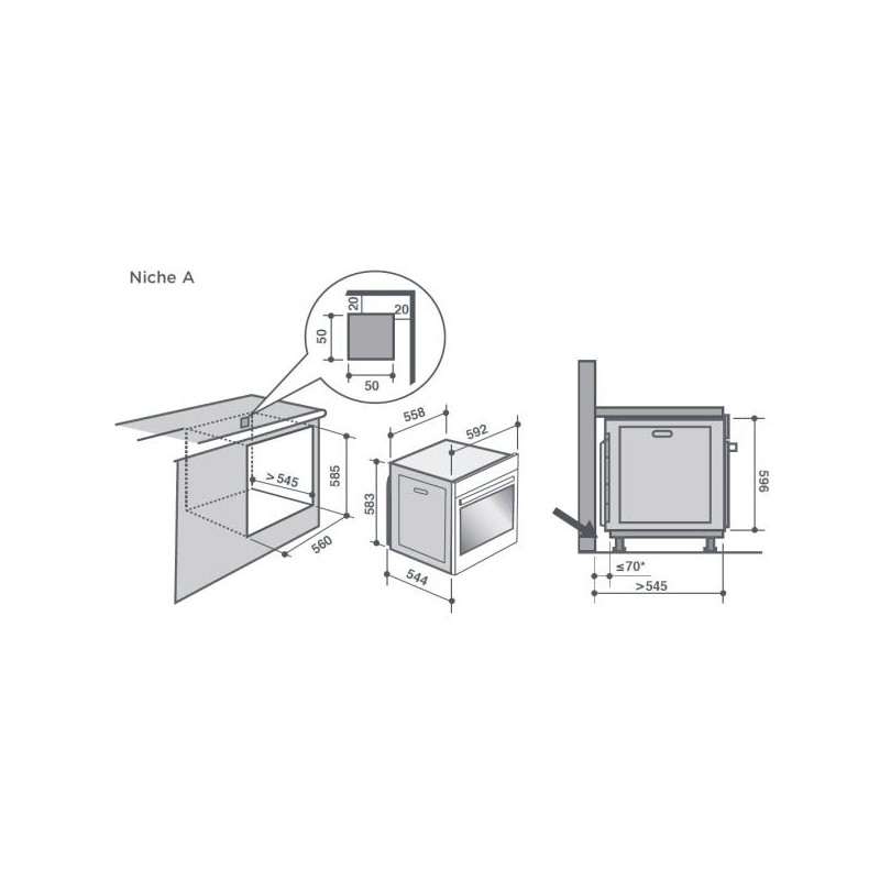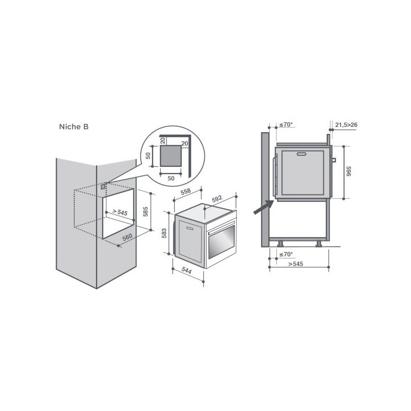 - Dimensions Encastrement (LxHxP): 56 x 58,5 x 55,5