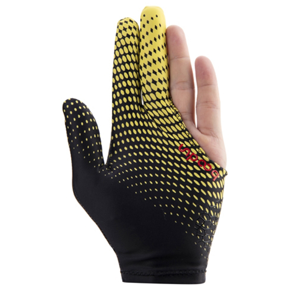 De Faugères Gant de Billard 3 Doigts Antidérapant en Lycra Modèle Boodun Noir / Jaune