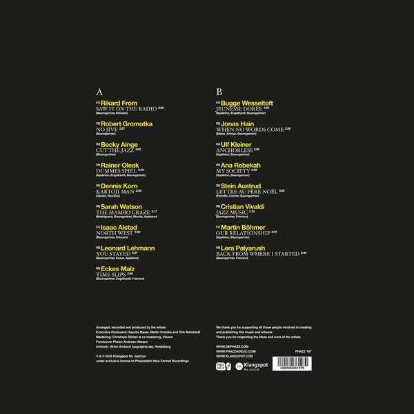 | Liste des pistes | 1.01 . saw it on the radio - rikard from - De-Phazz, Multi-Artistes1.02 . no jive - robert gromotka - De-Phazz, Multi-Artistes1.03 . cut the jazz - becky ainge - De-Phazz, Multi-Artistes1.04 . dummes spiel - rainer oleak - De-Phazz, Multi-Artistes1.05 . kartoji man - dennis korn - De-Phazz, Multi-Artistes1.06 . the mambo craze - sarah watson - De-Phazz, Multi-Artistes1.07 . north west - isaac alstad - De-Phazz, Multi-Artistes1.08 . you stayed - leonard lehmann - De-Phazz, Multi-Artistes1.09 . time slips - eckes malz - De-Phazz, Multi-Artistes1.10 . jeunesse dorée - bugge wesseltoft - De-Phazz, Multi-Artistes1.11 . when no words come - jonas hain - De-Phazz, Multi-Artistes1.12 . anchorless - ulf kleiner - De-Phazz, Multi-Artistes1.13 . my society - ana rebekah - De-Phazz, Multi-Artistes1.14 . lettre au père noël - stein austrud - De-Phazz, Multi-Artistes1.15 . jazz music - cristian vivaldi - De-Phazz, Multi-Artistes1.16 . our relationship - martin bohmer - De-Phazz, Multi-Artistes1.17 . back from where i started - lera palyarush - De-Phazz, Multi-Artistes |
