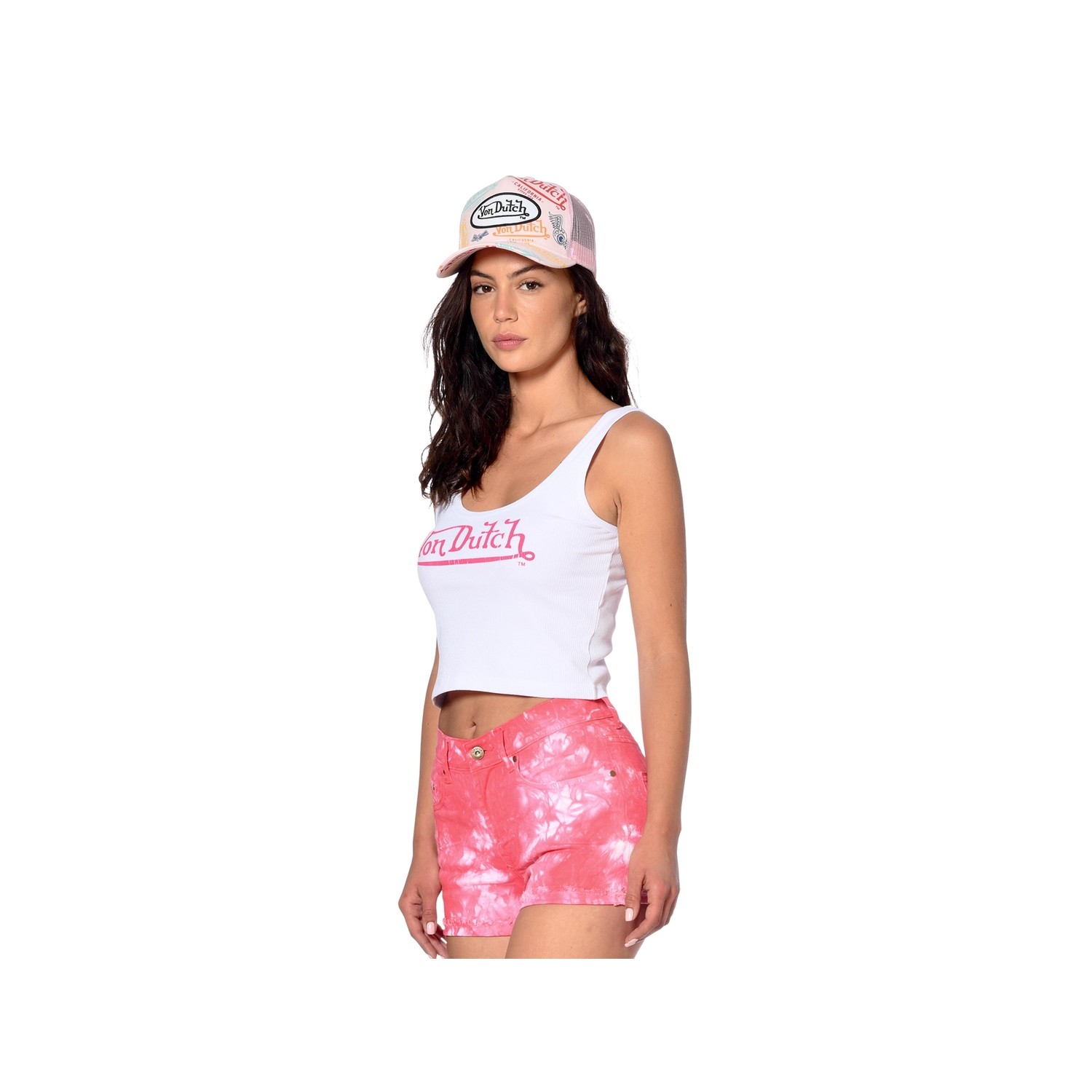 Von Dutch vous propose un tout nouveau débardeur crop top pour femme ! La marque de la kustom kulture vous propose ici un débardeur blanc avec un imprimé de son logo sur l'avant ! Qualité et confort seront toujours présent chez Von Dutch.