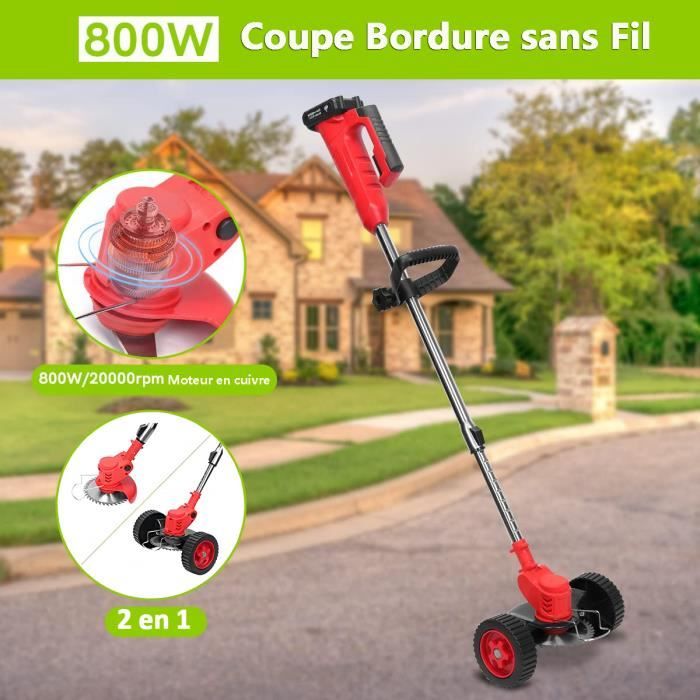 | Libellé | Débroussailleuse sans Fil avec 2 Batteries 4.0A , 3 en 1 Coupe-Bordure 90° Régler avec Roue de Guidage pour Coupe de Jardin, Pelouse |