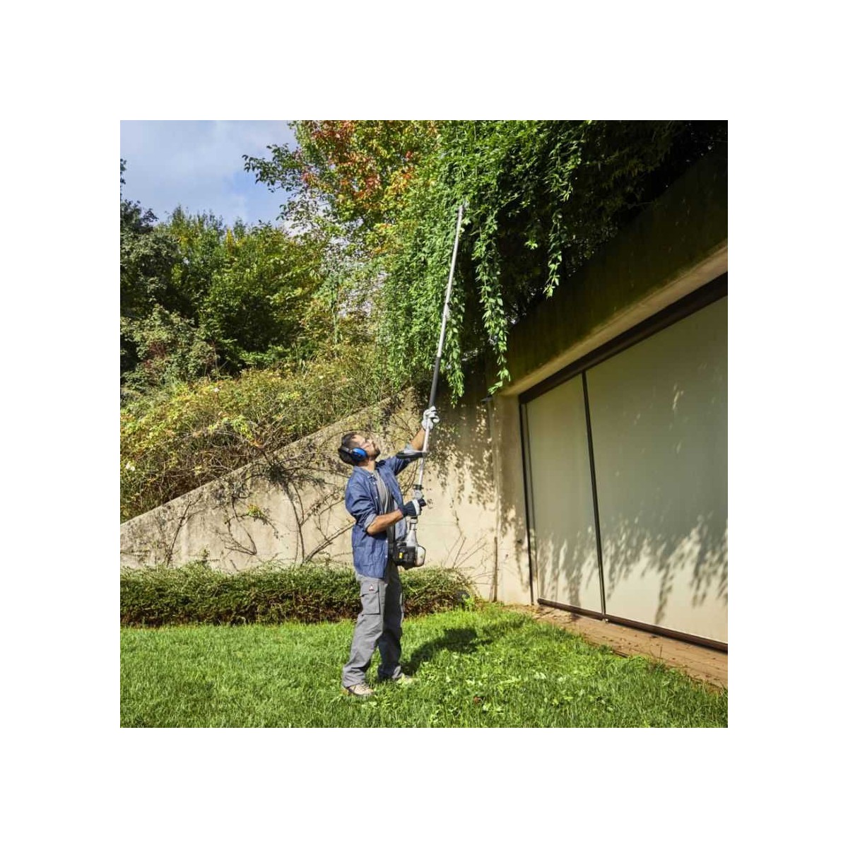 Vous pourrez également utiliser votre outil multifonctions Alpina en mode tronçonneuse/élagueuse pour élaguer des arbres ou encore en mode taille-haie pour effectuer des travaux d'entretien de vos espaces verts. Enfin, cet outil possède une dernière fonction : l'extension, qui vous permet de réaliser l'ensemble des travaux à distance.