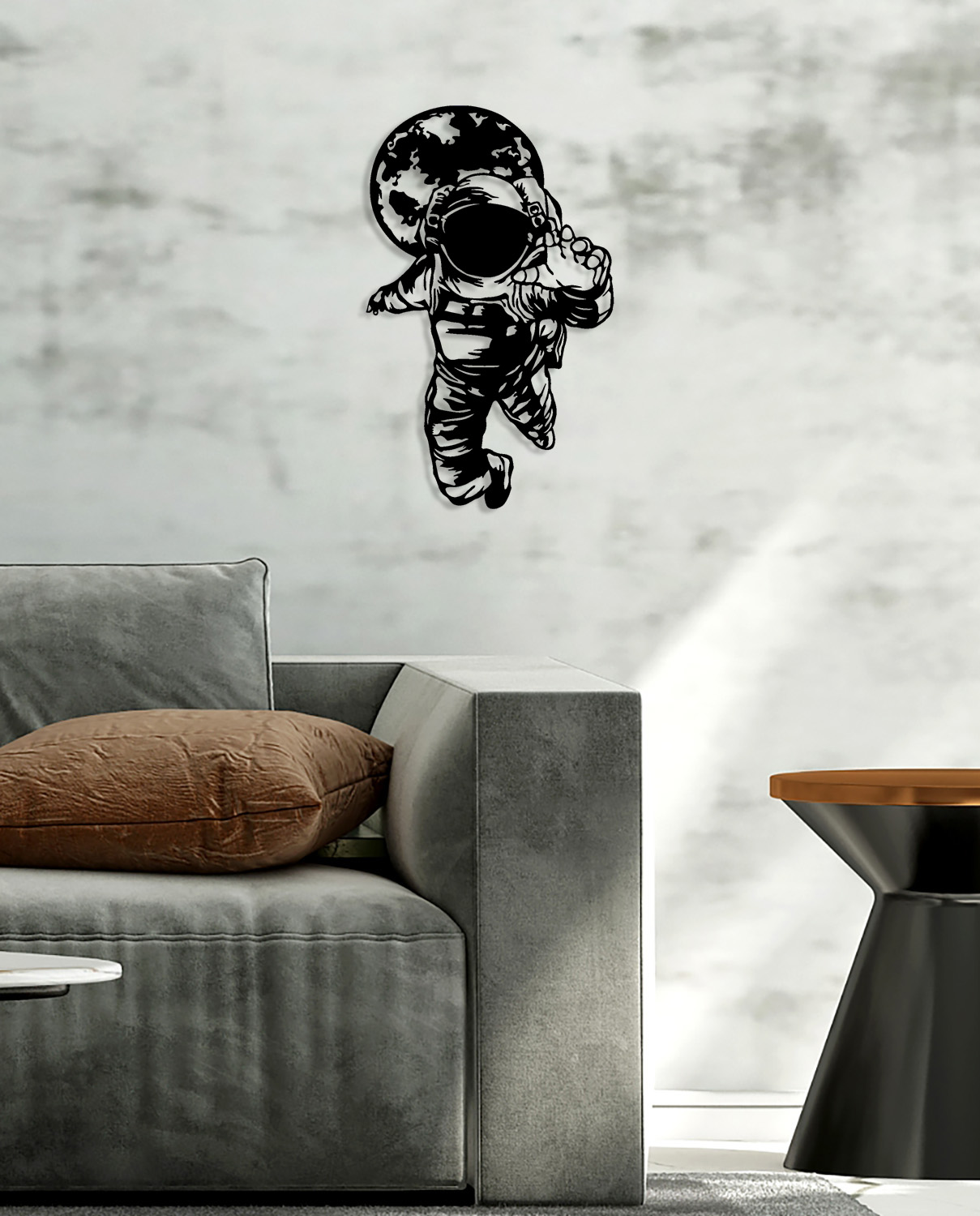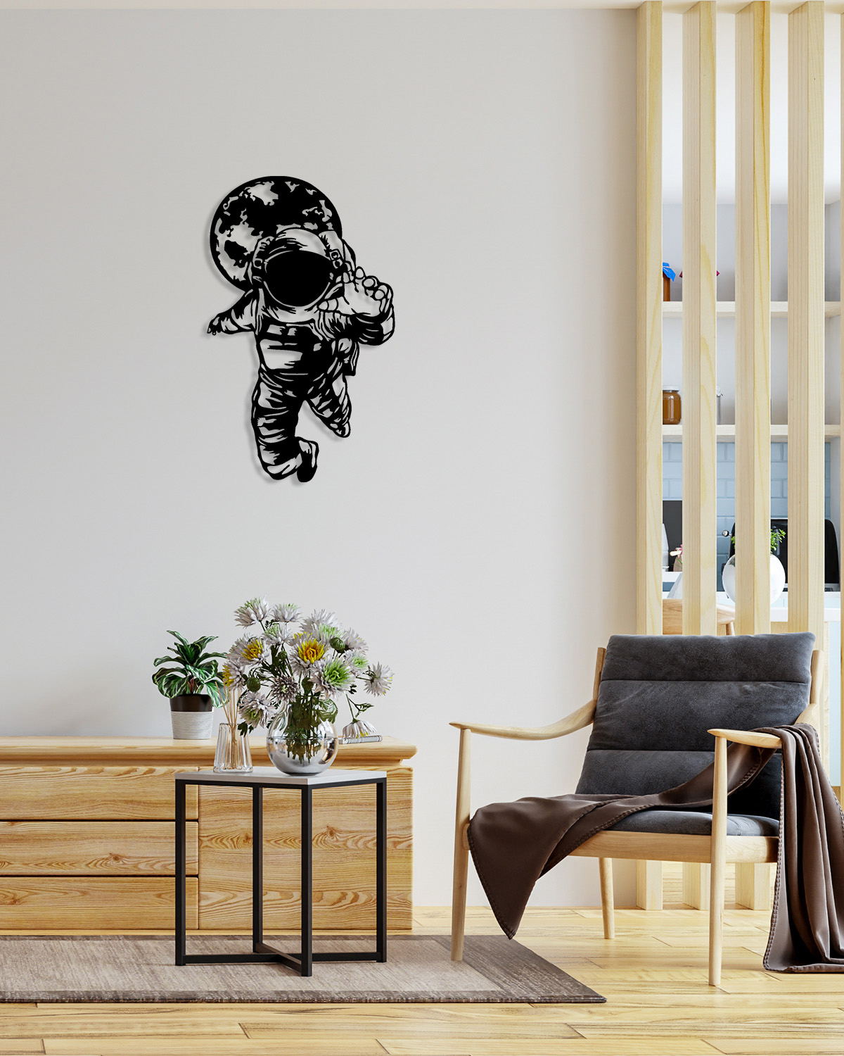 Le produit est constitué d'une seule pièce de métal DKP de 1,5 mm. Il est recouvert d'une couche de poudre électrostatique. L'emballage comprend l'étrier de fixation au mur et les vis.. Cette décoration en métal est la solution parfaite pour décorer les murs de votre maison ou de votre bureau. Elle permet de donner une touche d'originalité et de couleur aux espaces vides. | Collection: Astronaute 1 | Couleur: Noir | Matériel: Métal | Ensemble: 1 | Dimensions du Produit: L45xP0,15xA74 cm | Poids du Produit (Kg): 1,56 | Poids Supporté (Kg): - | Dimensions de Boîtes: W73xD3xH55 cm | Poids de Boîtes (Kg): 1,96 | Nombres de Boîtes: 1