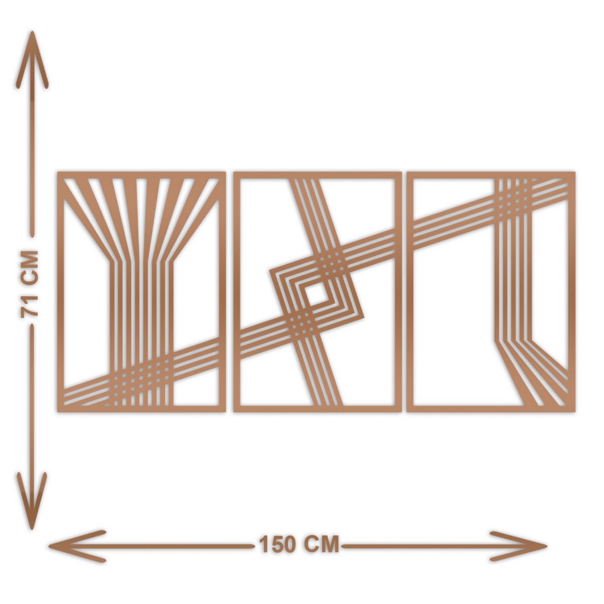 Le produit est composé de 3 pièces de métal DKP de 1,5 mm. Il est recouvert d'une couche de poudre électrostatique. L'emballage comprend l'étrier de suspension et les vis.. Cette décoration en métal est la solution parfaite pour décorer les murs de votre maison ou de votre bureau. Elle permet de donner une touche d'originalité et de couleur aux espaces vides. | Collection: Lignes 10 | Couleur: Cuivre | Matériel: Métal | Ensemble: 3 | Dimensions du Produit: L150xP3xA71 cm | Poids du Produit (Kg): 4,70 | Poids Supporté (Kg): - | Dimensions de Boîtes: W73,5xD3xH55,5 cm | Poids de Boîtes (Kg): 5,10 | Nombres de Boîtes: 1