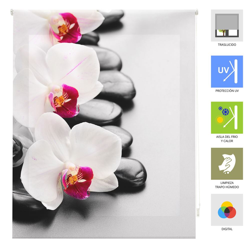 Décoration Fenêtre Zen Nature Fleur Pierre Store Enrouleur Imprimé Numérique Translucide Multicolore 140X