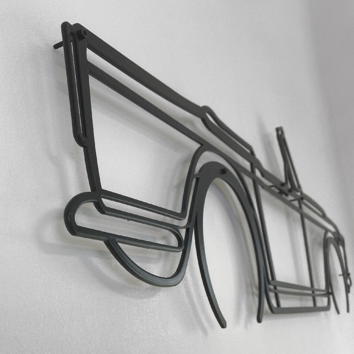 AVANTAGES DU PRODUITS:Tous nos modèles sont faits à partir d'une plaque d'acier de 3 mm d'épaisseur, découpée au laser. Ils sont ensuite polis à la main et recouverts d'un vernis epoxy noir mat. Chaque modèle est vendu avec ses vis d'élévation qui vous permettent de maintenir votre silhouette de voiture à une distance de 1,5 cm du mur. Tout le design de nos modèles réside dans cette élévation qui permet un jeu d'ombre selon l'orientation de la luminosité à la maison. Tous nos modèles sont livrés avec leur certificat d'authenticité (collection limitée à 200 pièces).