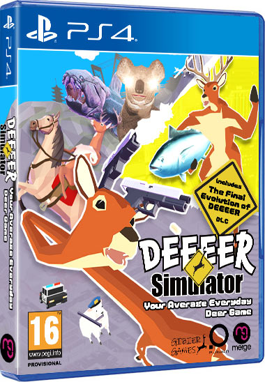Inclus, L'Évolution ultime du CEEEERF DLC. DEEEER Simulator: Votre Simulateur de Vie Quotidienne de Cerf. Devenez un cerf tout ce qu'il y a de plus ordinaire, et étirez-vous un peu le cou. DEEEER Simulator est un jeu dans lequel vous incarnez un cerf ordinaire, un cerf de tous les jours. Utilisez votre cou extensible, vos bois mortels et tout ce qu'un cerf a dans son arsenal pour traverser la ville. Batifolez et amusez-vous avec les autres animaux ou décimez la ville jusqu'à ce qu'il ne reste plus rien dans ce ""jeu de destruction de ville tranquille"". Jouez au cerf violent et vous devrez affronter une police des animaux des plus tenaces : moutons maîtres de kung-fu, ours qui se transforment en voiture de police, lapins aux oreilles ridiculement surdéveloppées... Ils sont tous là rien que pour vous ! Vivez comme un cerf en ville et libérez votre vrai potentiel ! Ah, et n'oubliez pas de découvrir le sombre secret de la ville.