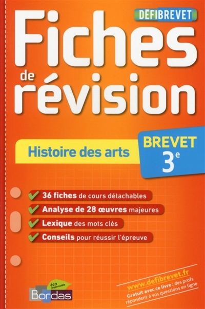 Libellé DEFIBREVET FICHES DE REVISION HISTOIRE DES ARTS 3E (Relié)