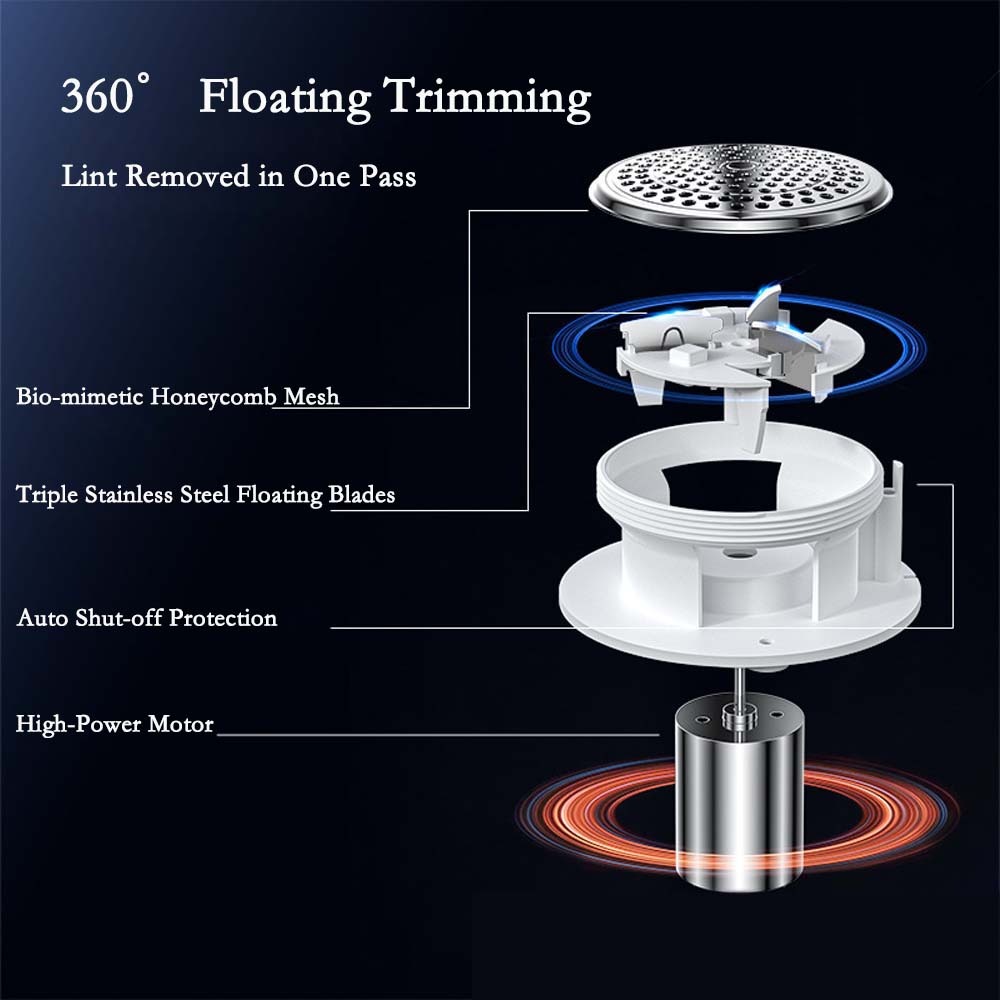 Défroisseur anti-bouloches rechargeable sans fil - Rasoir à tissu avec système à 6 lames White