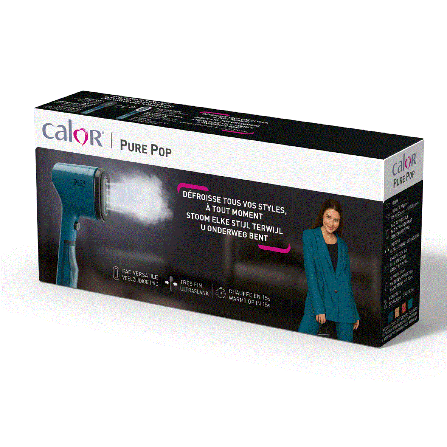 Révélez votre style avec le défroisseur Pure POP, la solution révolutionnaire pour l'entretien du linge. Cet appareil intuitif et efficace purifie et défroisse en un seul geste simple. Le système de tête réversible pratique permet de basculer facilement entre un côté velours pour un défroissage sans aucun risque (même sur les textiles les plus délicats) et un côté anti-peluches pour rafraîchir vos vêtements et garder un look impeccable. Système de tête réversible innovant qui vous permet de changer facilement de côté pour un entretien du linge pratique. Un temps de chauffe express de 15 secondes, idéal pour une utilisation fréquente et des retouches de dernière minute. La puissance purifiante 100 % naturelle de la vapeur réduit les odeurs, rafraîchit et assainit.