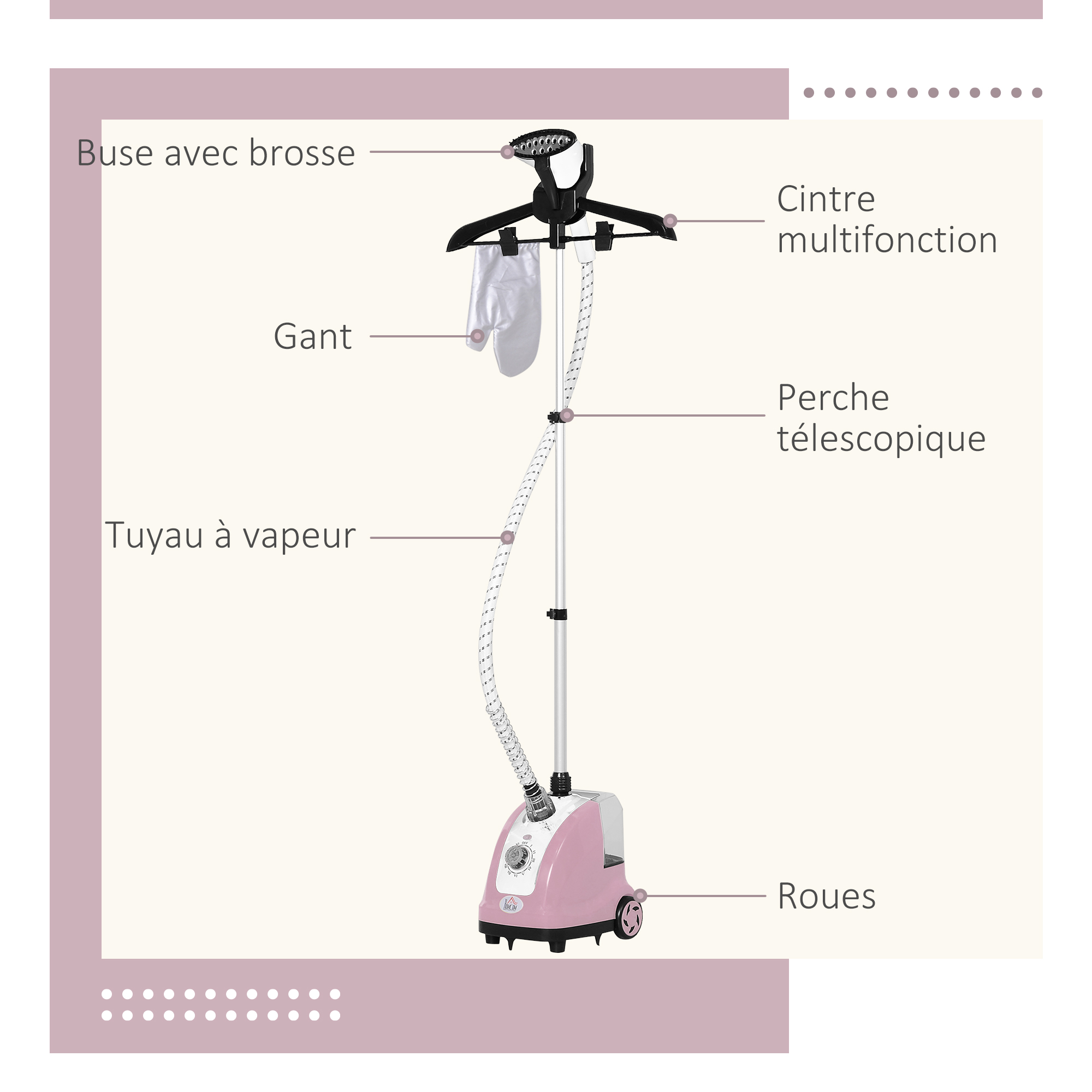 Défroisseur vapeur vertical défroisseur à vêtements 1,4L 1950W 32g/min tige telescopique rose