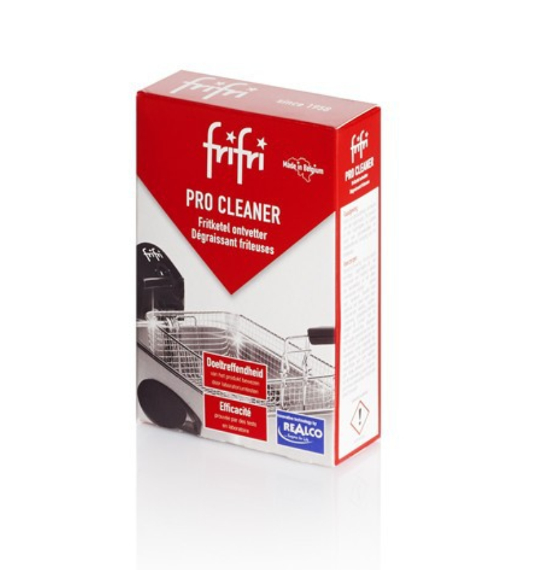 f1126 - dégraissant friteuse - Ce dégraissant friteuses Pro Cleaner Frifri F1126 dégraisse en profondeur et sans efforts les friteuses, caquelons à fondue, casseroles? 4 x plus concentré qu?un produit liquide. Prolonge la durée de vie de vos appareils, grâce à l?action des enzymes.Produit concentré, efficace et respectueux de l?environnement , il est formulé à base de composés biodégradables.Videz le contenu de la cuve de la friteuse, des caquelons ou des casseroles (veillez à éliminer la graisse dans un centre de collecte des déchets spéciaux) et remplissez d?eau chaude (non bouillante). Versez le contenu d?un sachet (25 gr). Laissez agir 1 heure. Frottez si nécessaire pour décrasser. Rincez et essuyez.Pour votre santé, renouvelez votre huile régulièrement. Ce produit vous aidera à nettoyer facilement et efficacement votre friteuse à chaque changement d?huile.