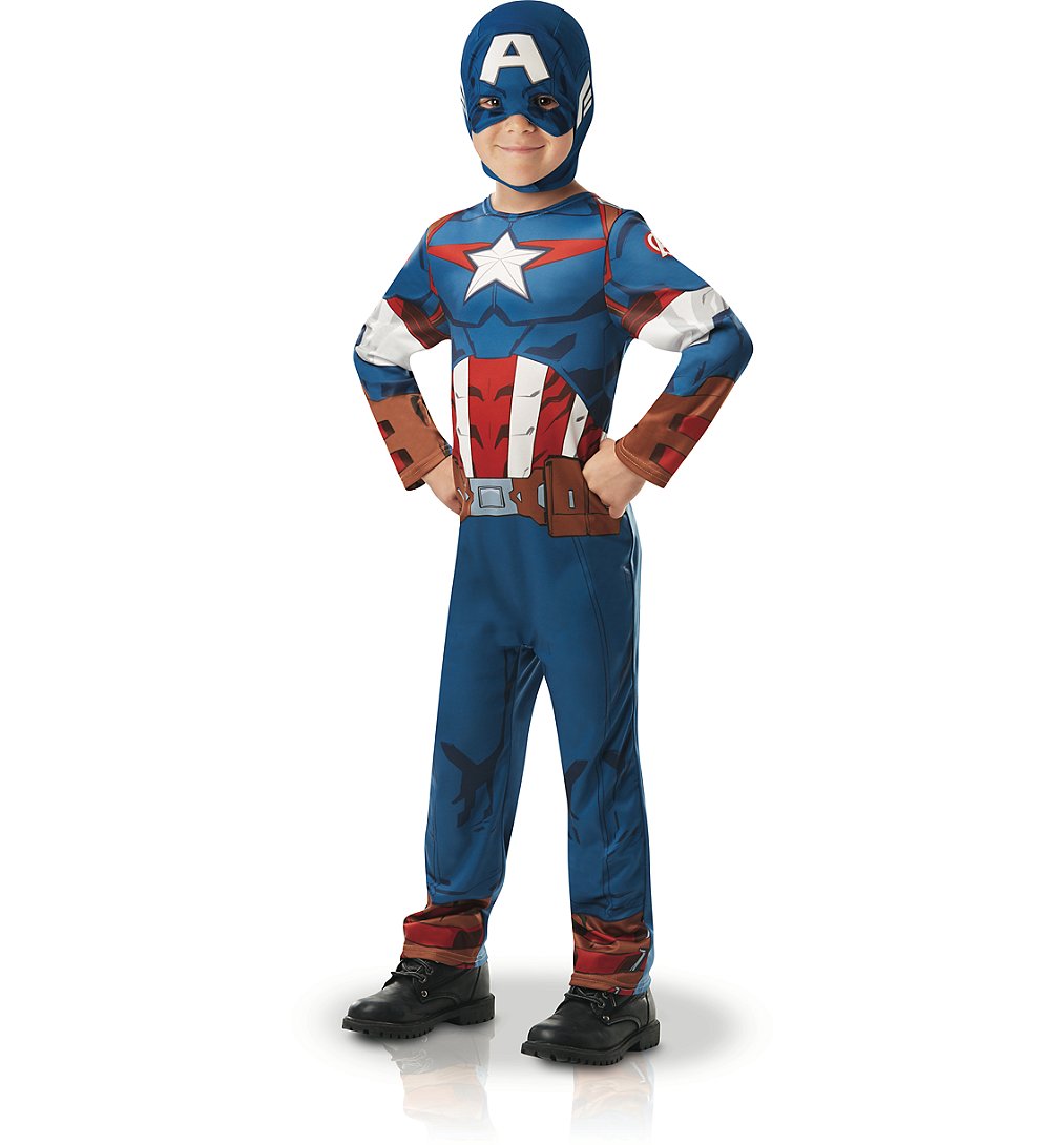 Déguisement classique Captain América série animée taille S comprenant une combinaison imprimée recto et une cagoule imprimée