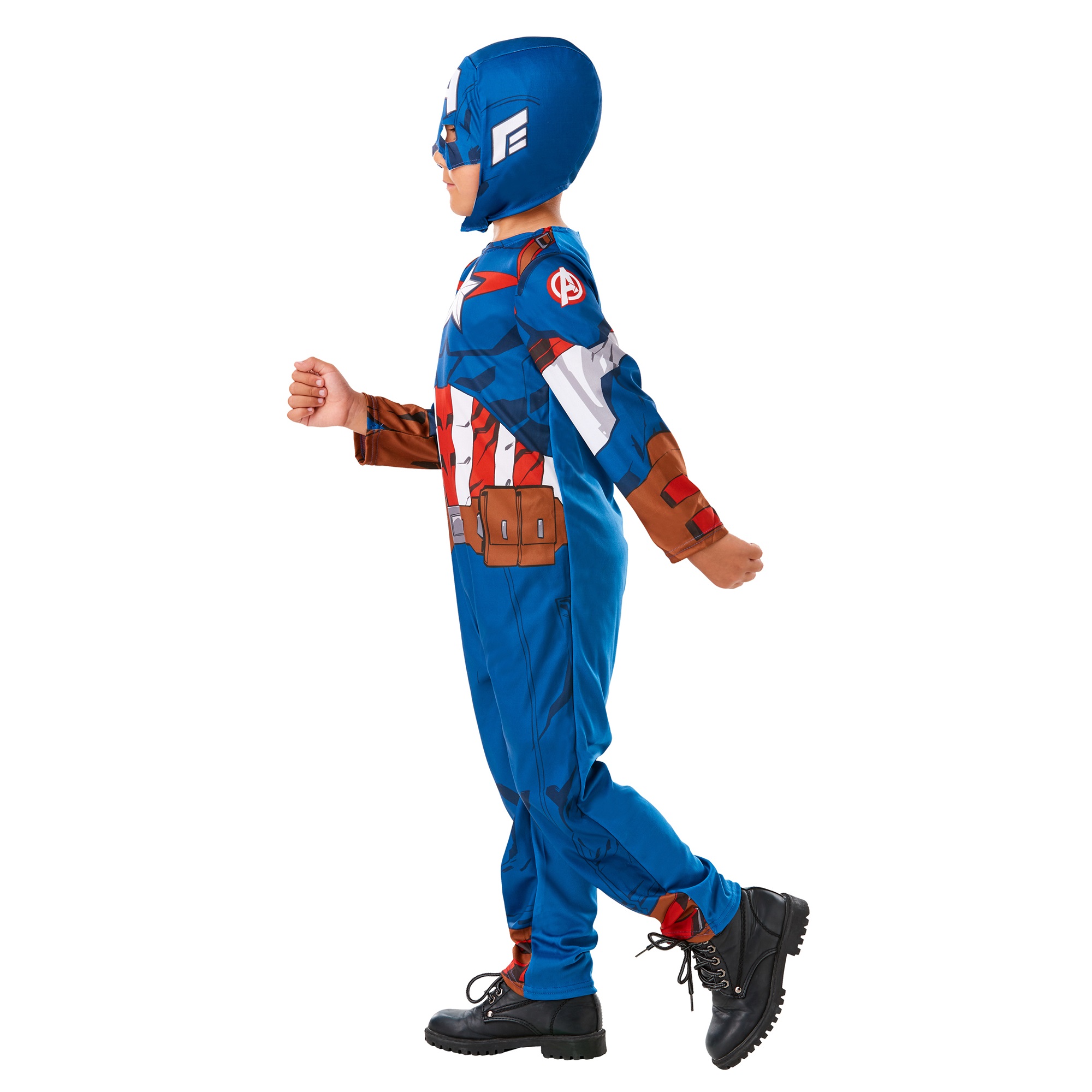 Déguisement classique Captain América série animée taille S comprenant une combinaison imprimée recto et une cagoule imprimée