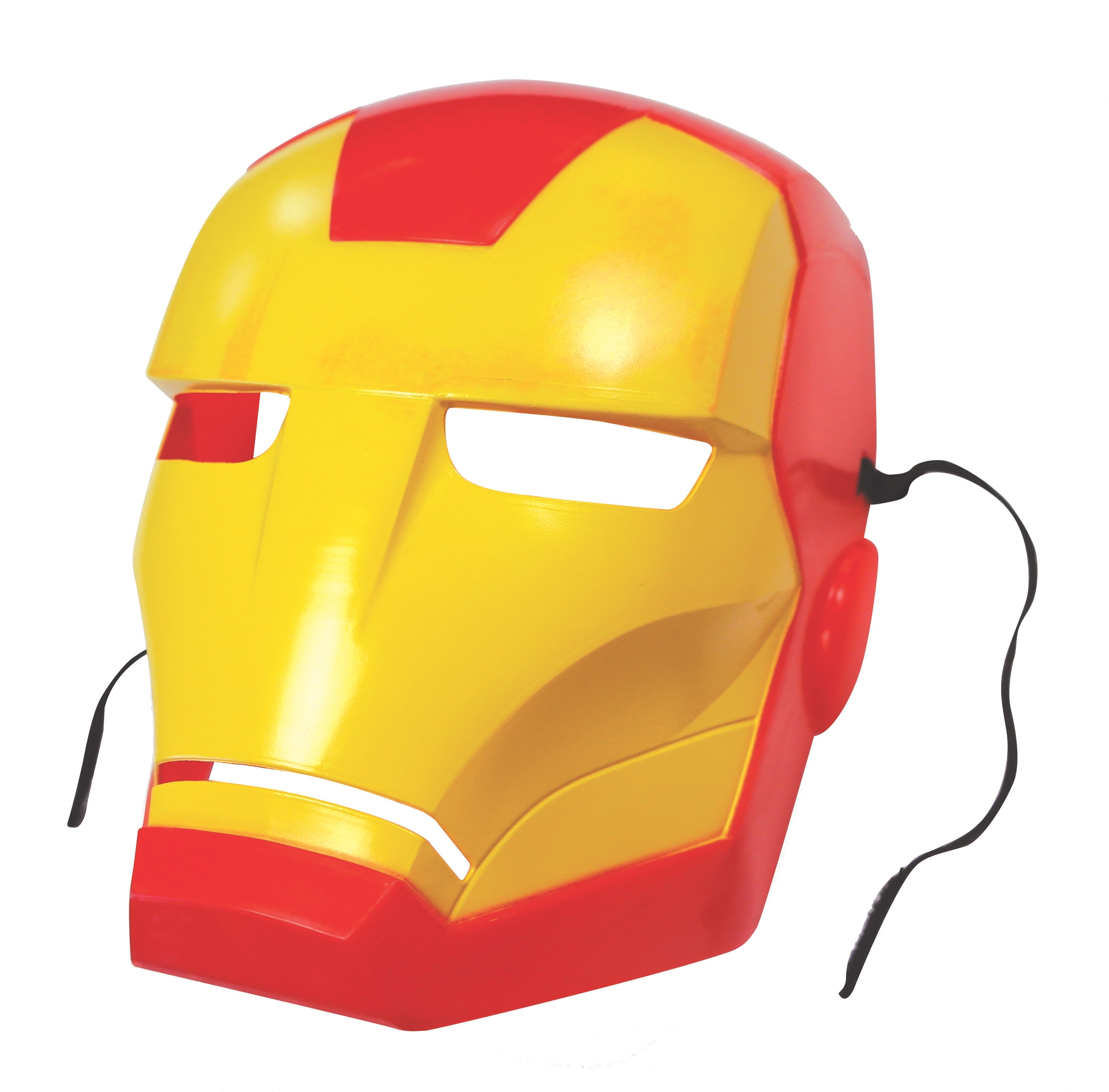 Une combinaison rouge et or à manches longues en jersey imprimé effet « armure » avec attache velcro dans le dos. Un masque en PVC assorti à l’effigie d’Iron-Man avec attache élastique à l’arrière et ouvertures pour les yeux.