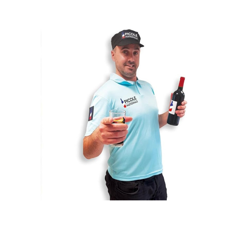 - Inclut : T-shirt bleu clair, casquette bleu marine avec inscription "Picole Nationale".
