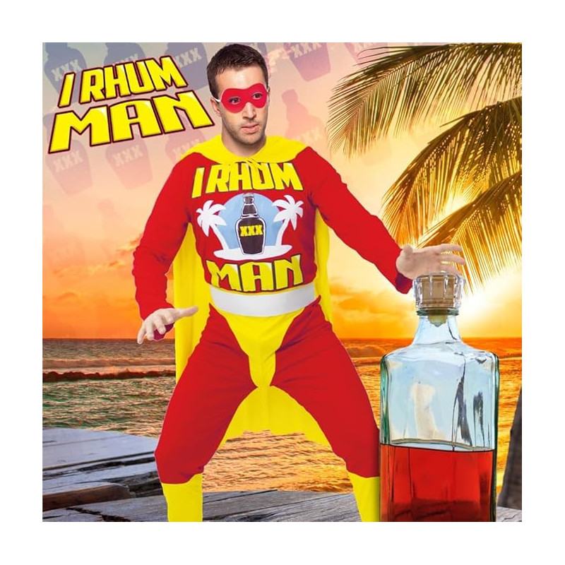 Faites le plein de rires et d'amusement avec le déguisement I Rhum Man. Commandez dès maintenant et devenez le super-héros de la soirée !