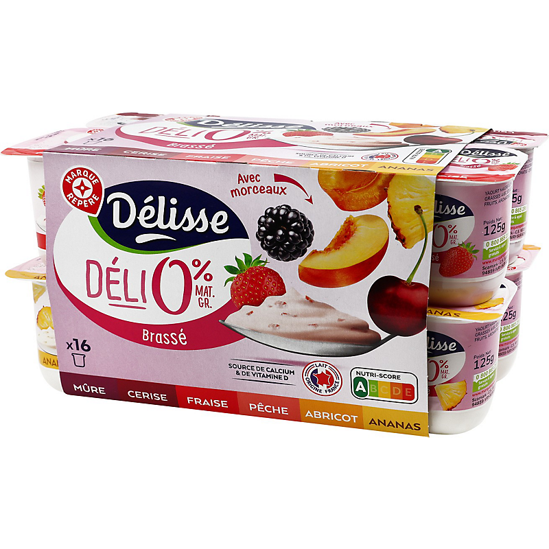 Déli'light yaourt aux fruits 0% Mat. Gr. - 16 x 125 g - DELISSE