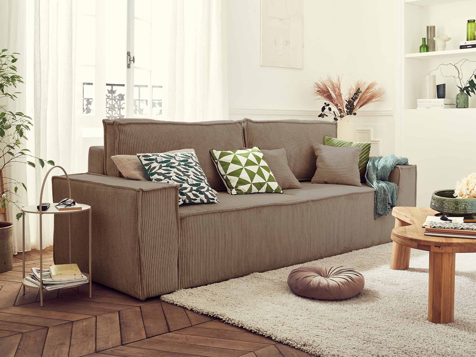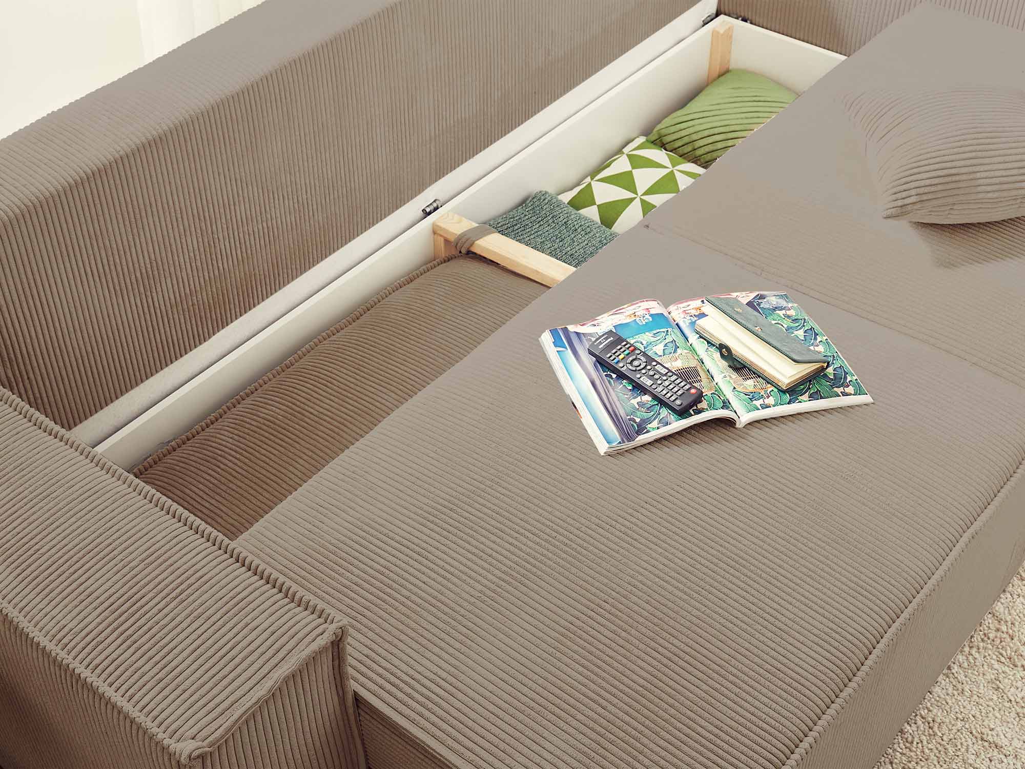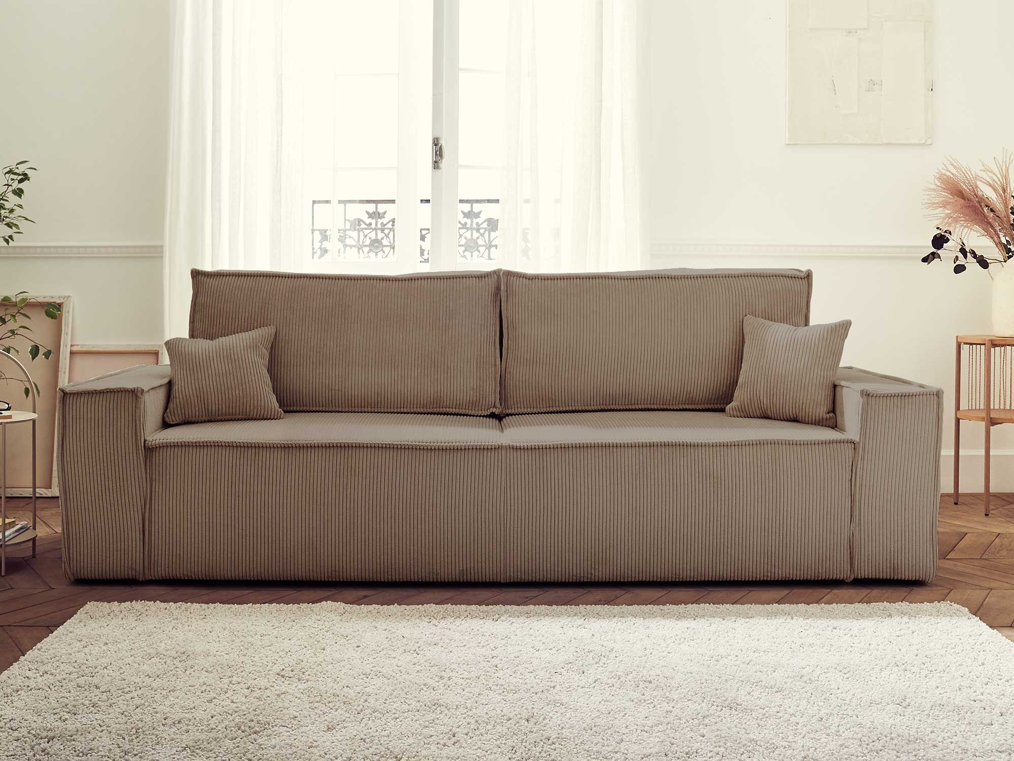 | Libellé | Dellia - canapé 3 places convertible - avec coffre - en velours côtelé - style contemporain |