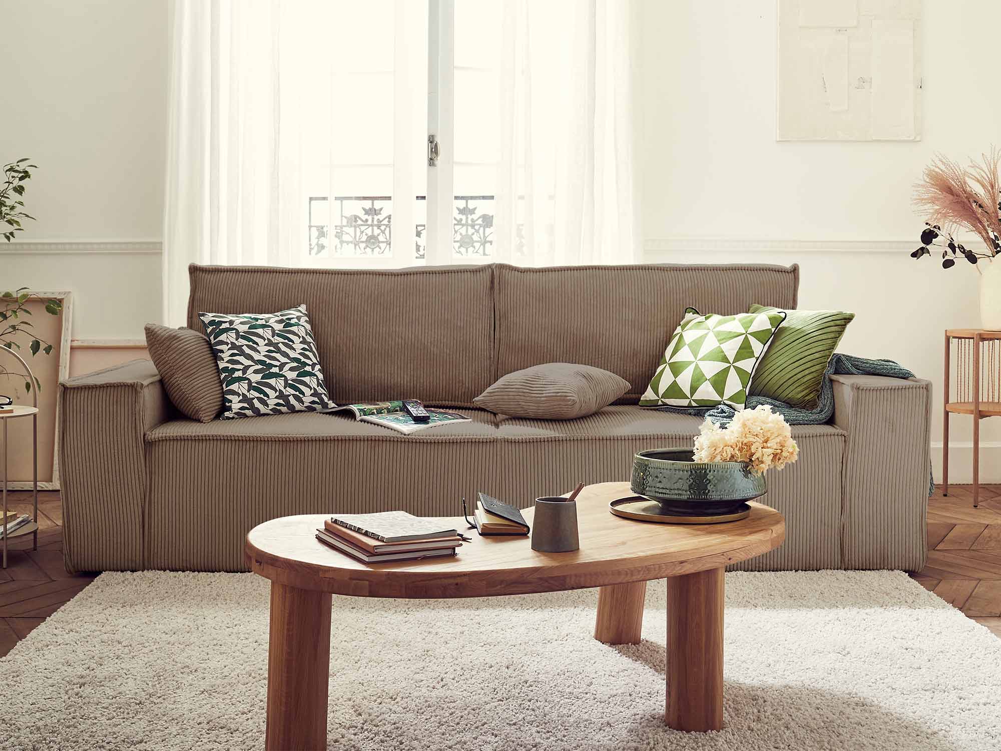 Comme tous les canapés en velours côtelé, Dellia n’aime pas l’eau. Il est donc recommandé de le nettoyer à l’aspirateur avec un embout adapté. Nettoyer les salissures légères avec un chiffon humide.