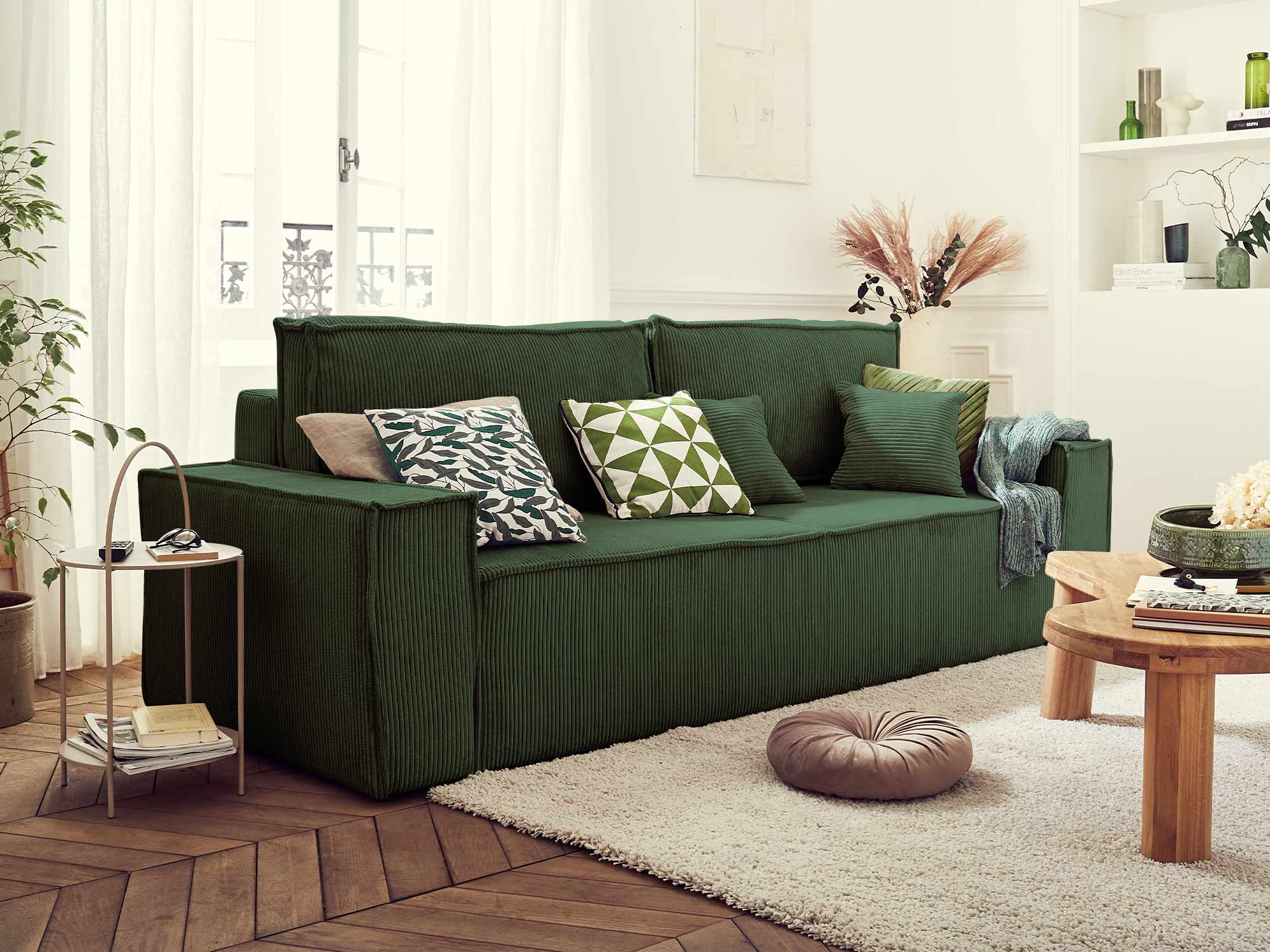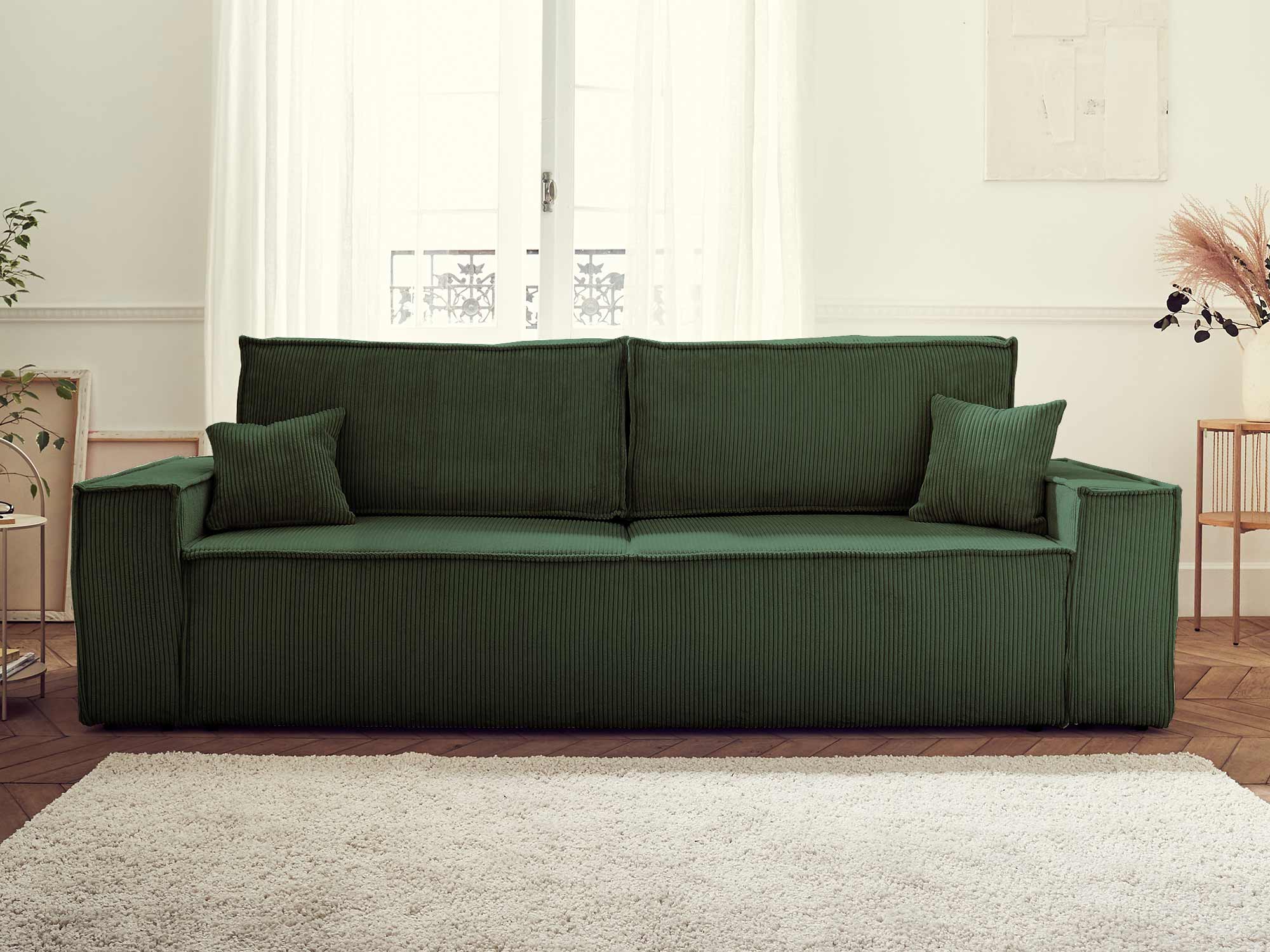 | Libellé | Dellia - canapé 3 places convertible - avec coffre - en velours côtelé - style contemporain |