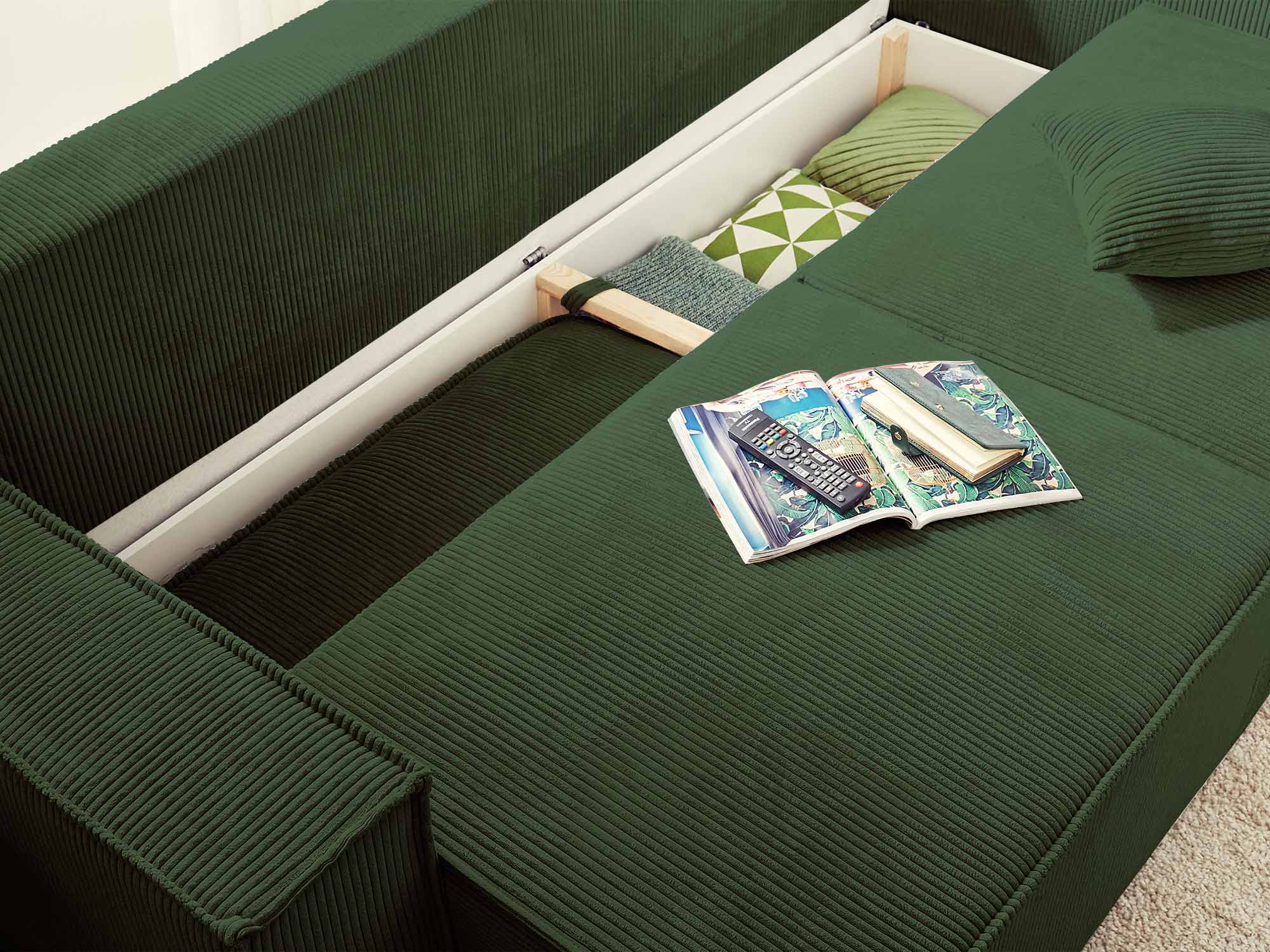 Dellia - canapé 3 places convertible - avec coffre - en velours côtelé - style contemporain