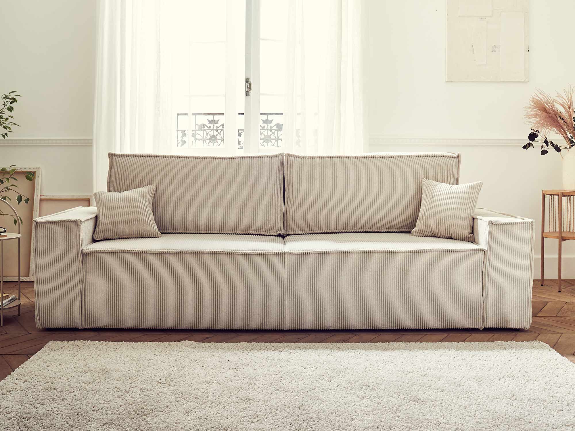 | Libellé | Dellia - canapé 3 places convertible - avec coffre - en velours côtelé - style contemporain |